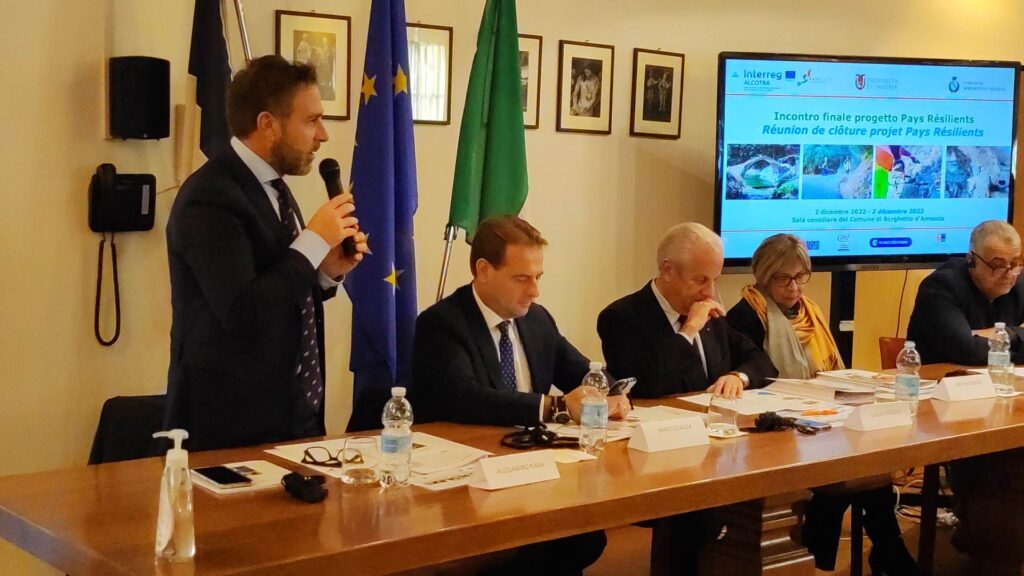 Si è tenuto oggi pomeriggio nella Sala consigliare del Comune di Borghetto d’Arroscia l’incontro conclusivo del progetto transfrontaliero “Pays Resilients”, volte a interventi di prevenzione e mitigazione del rischio idrogeologico.