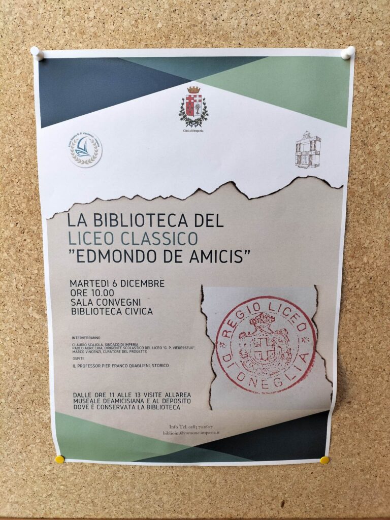 Importante convegno questa mattina, martedì 6 dicembre in biblioteca a Imperia dal titolo “La Biblioteca del Liceo Classico Edmondo De Amicis“.