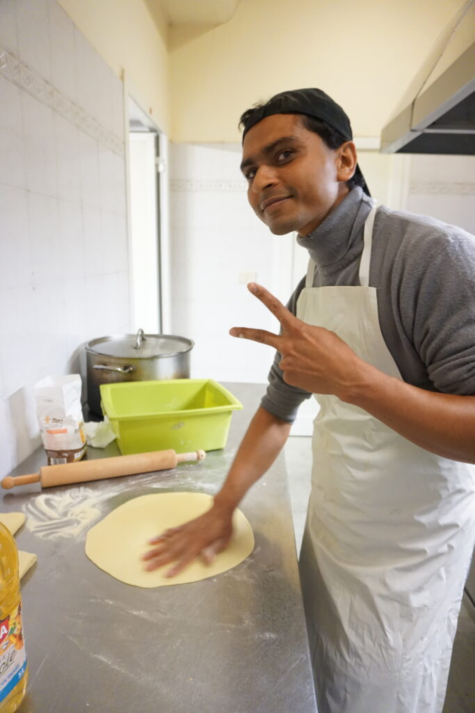 Qui ho lavorato per sei mesi come lavapiatti in un ristorante, poi ho iniziato alla cooperativa come cuoco. Ora ho un contratto come tirocinante. Lavoro bene, con le persone mi trovo molto bene.