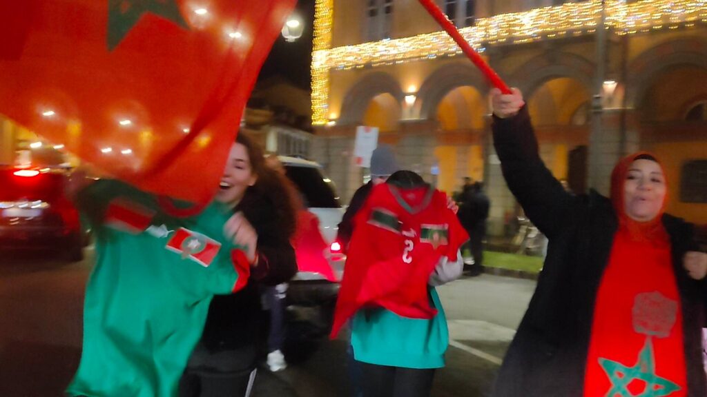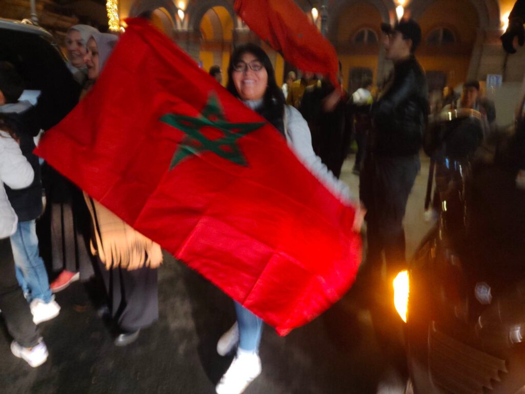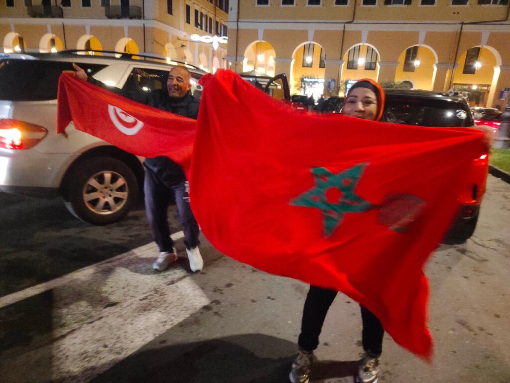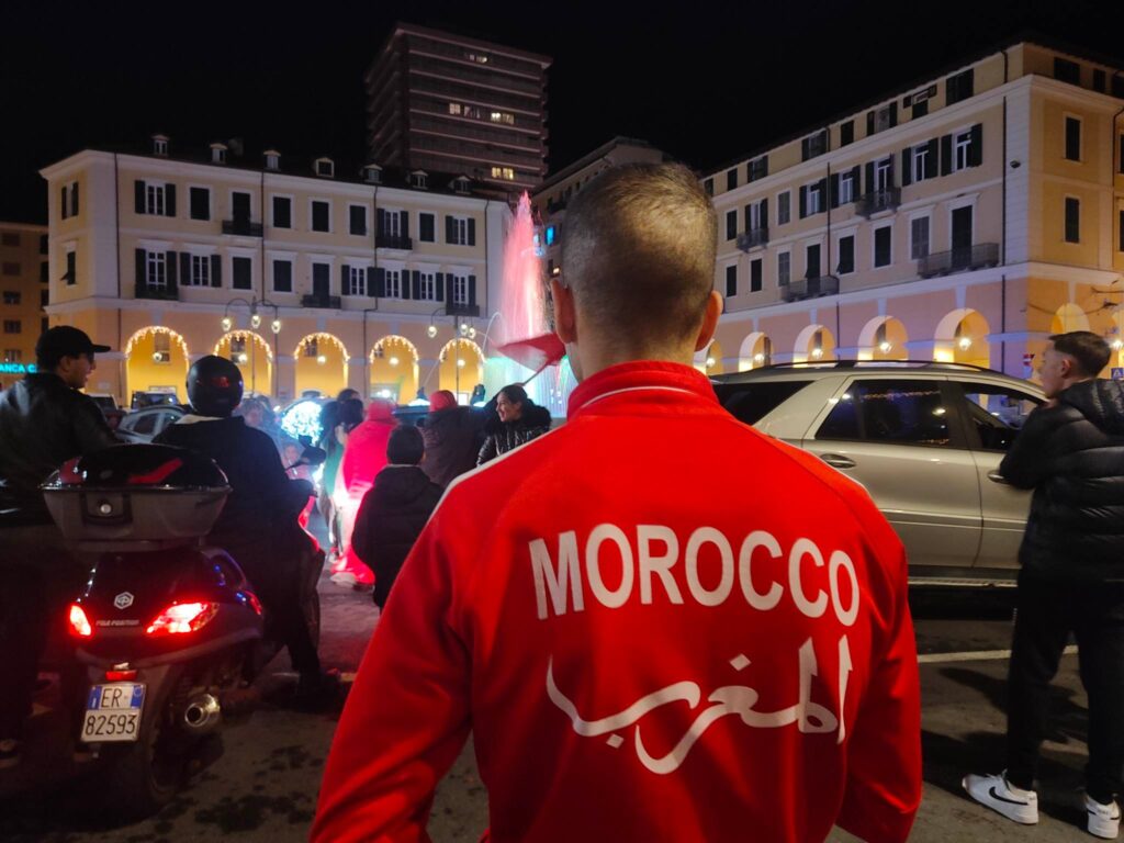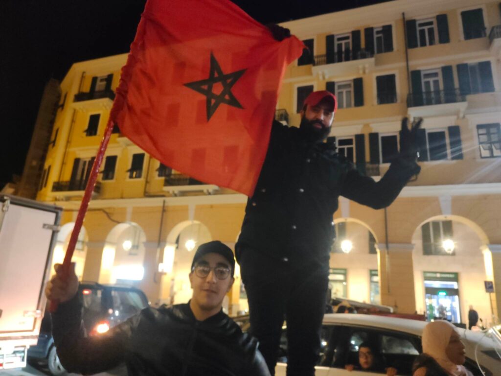 Grande festa anche a Imperia, in piazza Dante, per la vittoria del Marocco, 1-0 contro il Portogallo, che ha permesso alla nazionale nordafricana di conquistare le semifinali nei mondiali di calcio in corso in Qatar.