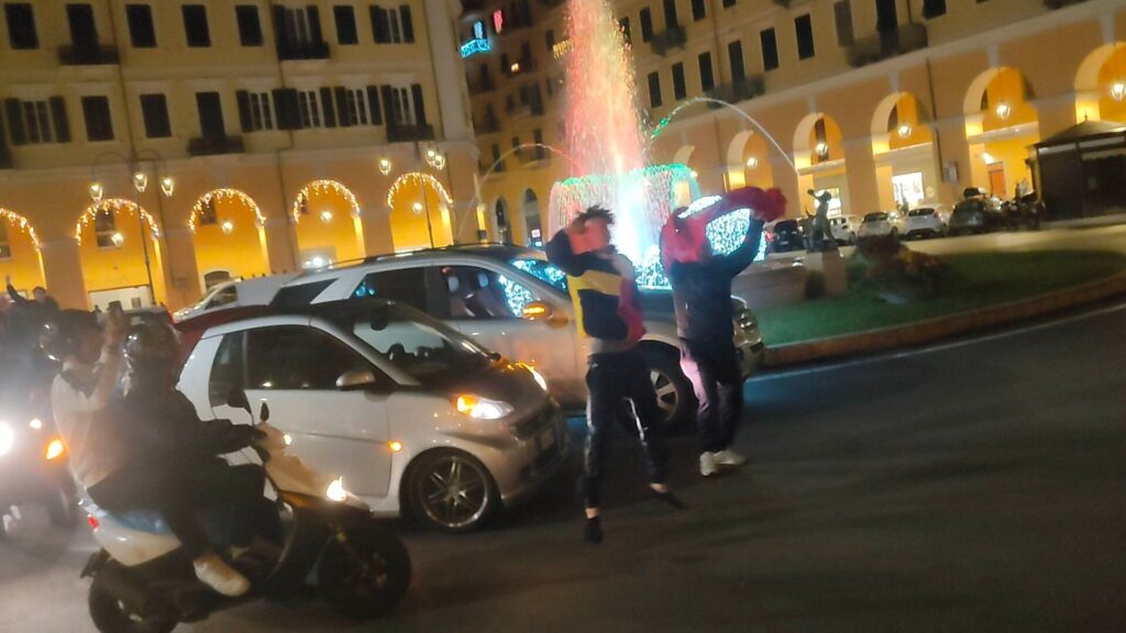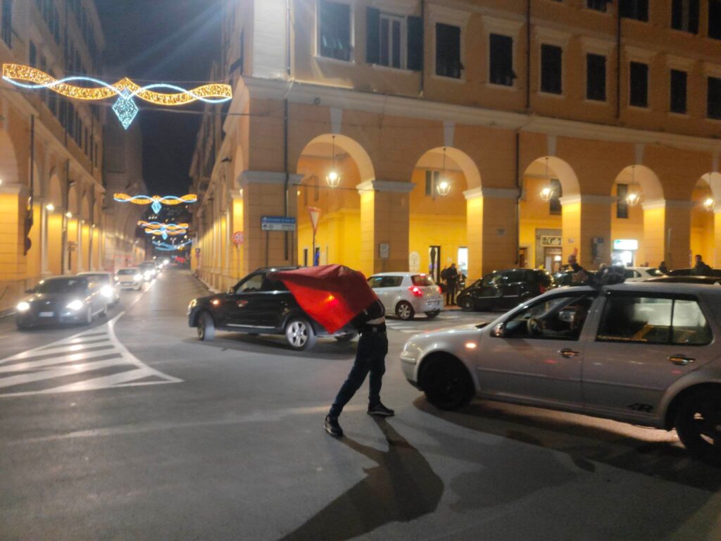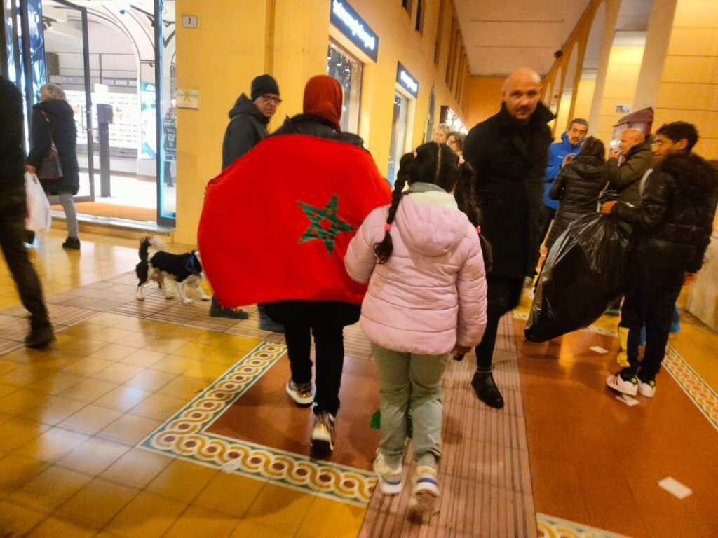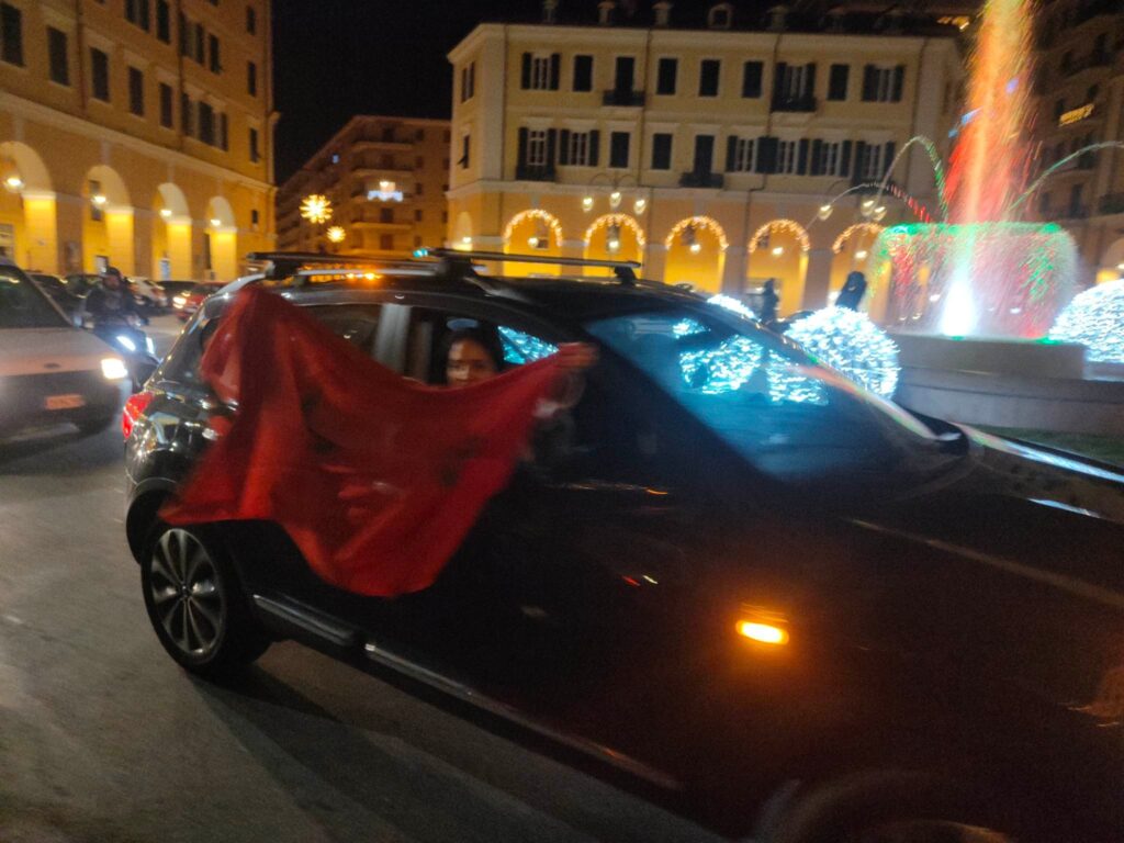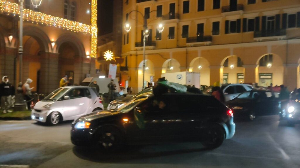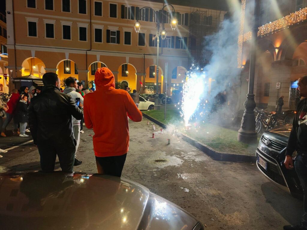 Dopo il fischio finale è espolosa la festa anche in Italia, dove vive una nutrita comunità magbrebina. Imperia non ha fatto eccezione, con caroselli, cori, bandiere e magliette in piazza Dante.