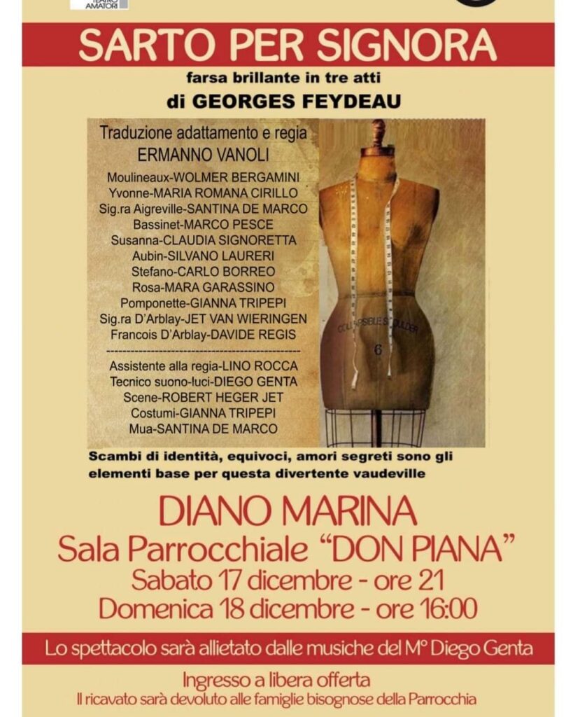 L’appuntamento è nella sala delle opere Parrocchiali di Diano Marina sabato 17 dicembre alle ore 21,00 con replica domenica 18 docembre alle ore 16,00.
