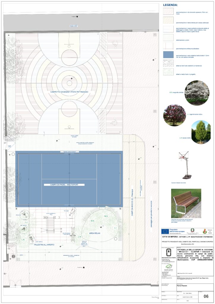 Il progetto, del valore di un milione 147 mila 729 euro oltre Iva, compresi oneri per la sicurezza, prevede la costruzione di campi da padel e bocce, percorso vita, con relative coperture e infrastrutture accessorie, nonché impianto di illuminazione.