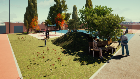 L’intervento prevede la nuova realizzazione di un campo da padel, di un campo da bocce (petanque) e di un percorso vita che, insieme all’adiacente campo da calcio, andranno a costituire la nuova Cittadella dello Sport intergenerazionale.