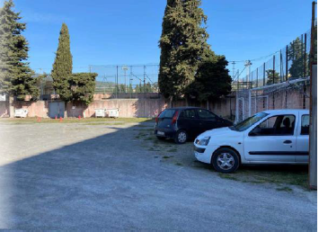 Il progetto di riorganizzazione delle aree esterne ha previsto la realizzazione e l’adeguamento dell’area mediante la creazione di due parcheggi per persone portatrici di handicap, posizionati opportunamente in corrispondenza dell’accesso al piazzale stesso oltre alla sistemazione del percorso di accesso al campo di calcio per i mezzi di servizio e di soccorso.