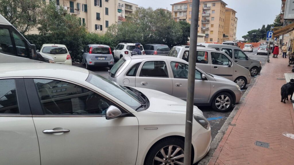 Tutta Imperia è bloccata. Arriviamo qua in via Trento e non c’è un parcheggio. Se ne trovi uno è solo per mezz’ora con il disco orario.