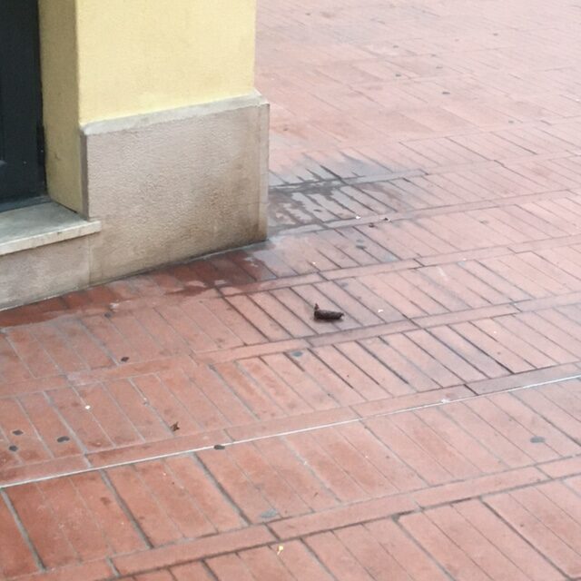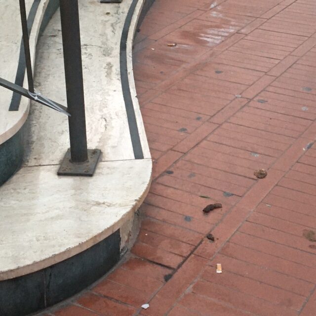 Ormai diventata WC preferito dei nostri amici a quattro zampe che regolarmente vengono portati in questo luogo per fare i propri bisogni nelle aiuole dell’elegante piazza , sede dell’Auditorium , sulle colonne o semplicemente sul pavimento .