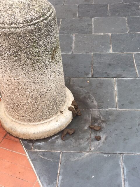 Quasi tutti i padroni di questi cani non sono in possesso della famosa bottiglietta d’acqua per pulire i muri dalla pipì , obbligatoria a seguito di un ordinanza del sindaco , ma addirittura alcuni non raccolgono neppure le deiezioni regalando ogni mattina ai passanti e alle persone che si recano negli Uffici o nelle banche della piazzetta questo bello spettacolo.