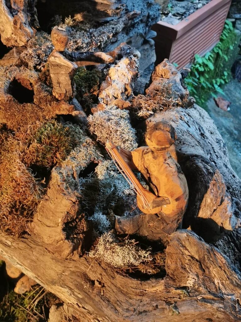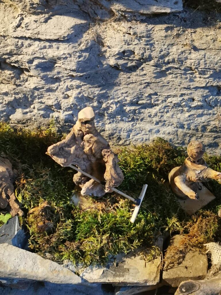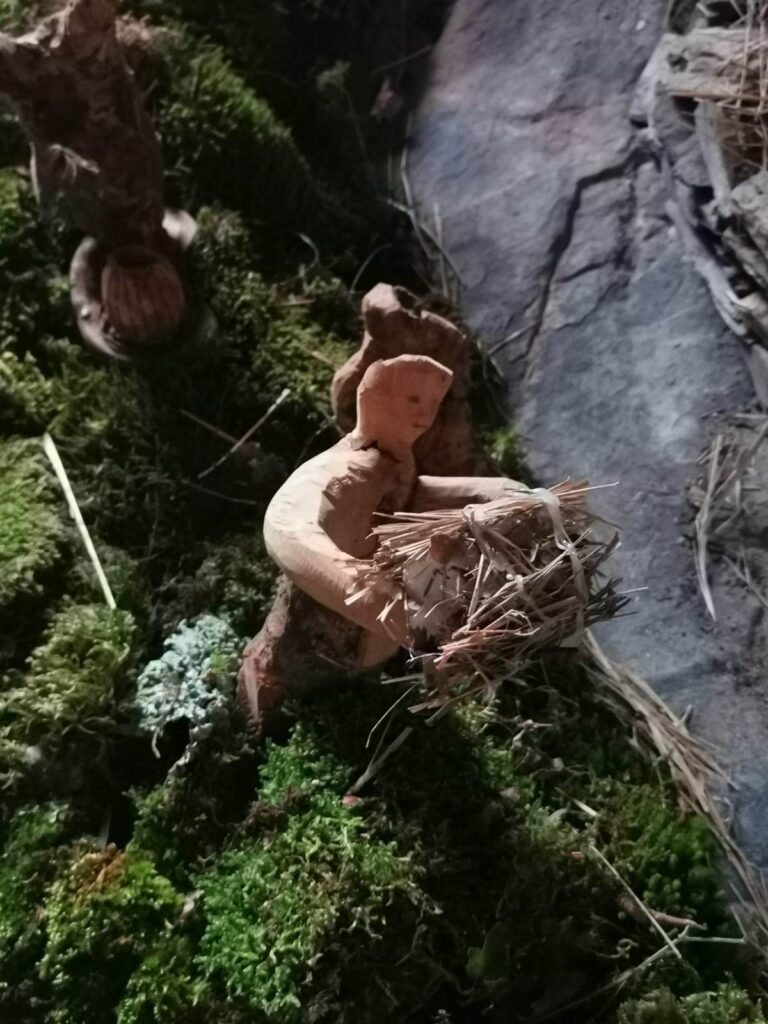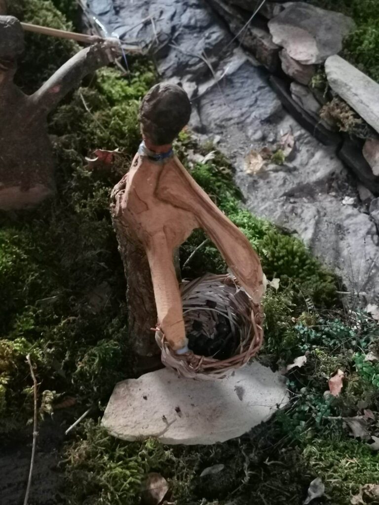 “Anche quest’anno mi sono divertito a rappresentare i mestieri di una volta con le statuette realizzate da me, circa una trentina. Ho usato pezzi di legno trovati in campagna, mi lascio ispirare dalla loro forma. Proprio oggi ne ho trovato un altro che inizierò a intagliare.
