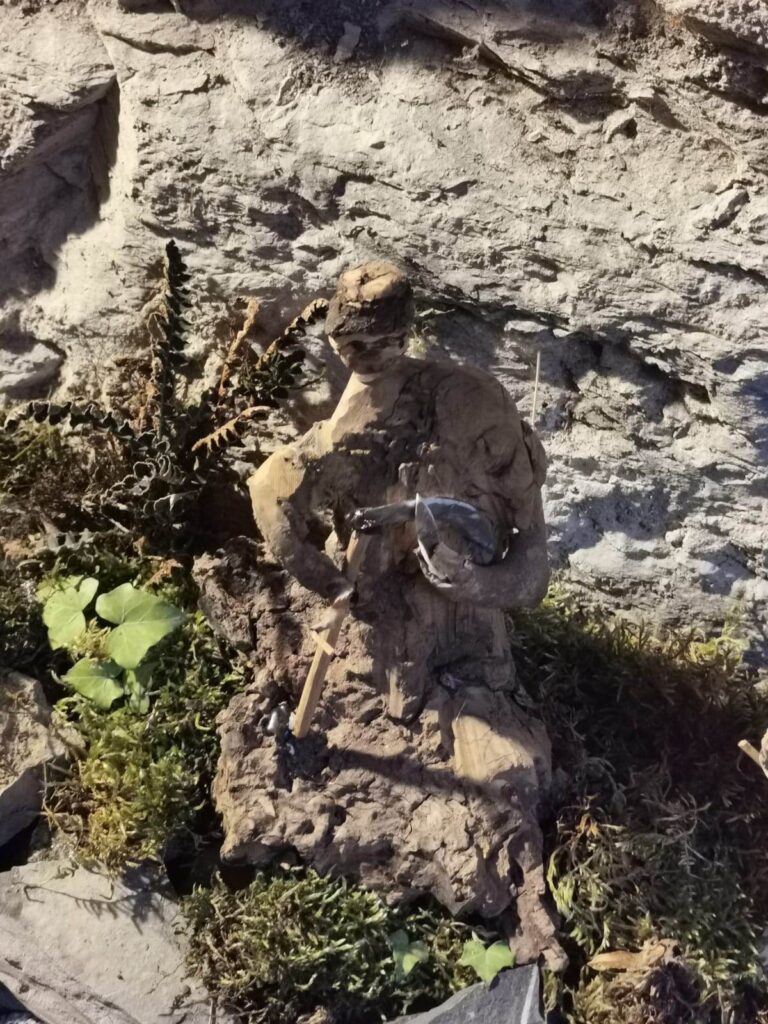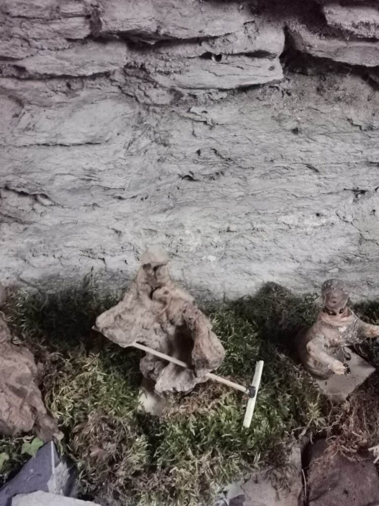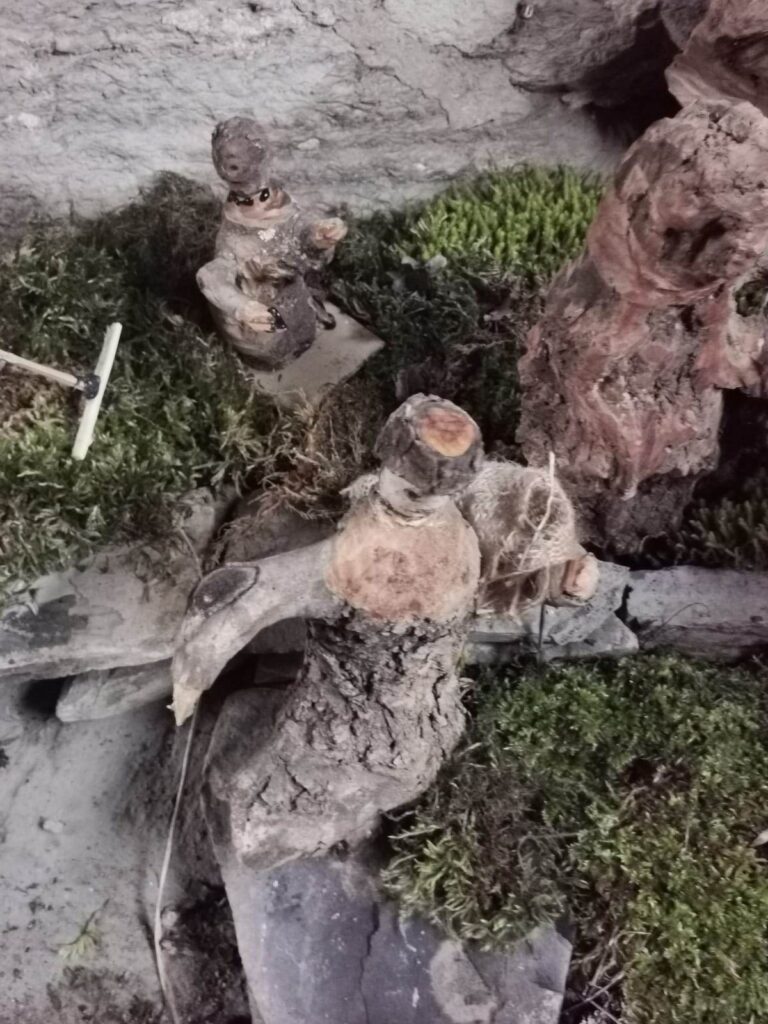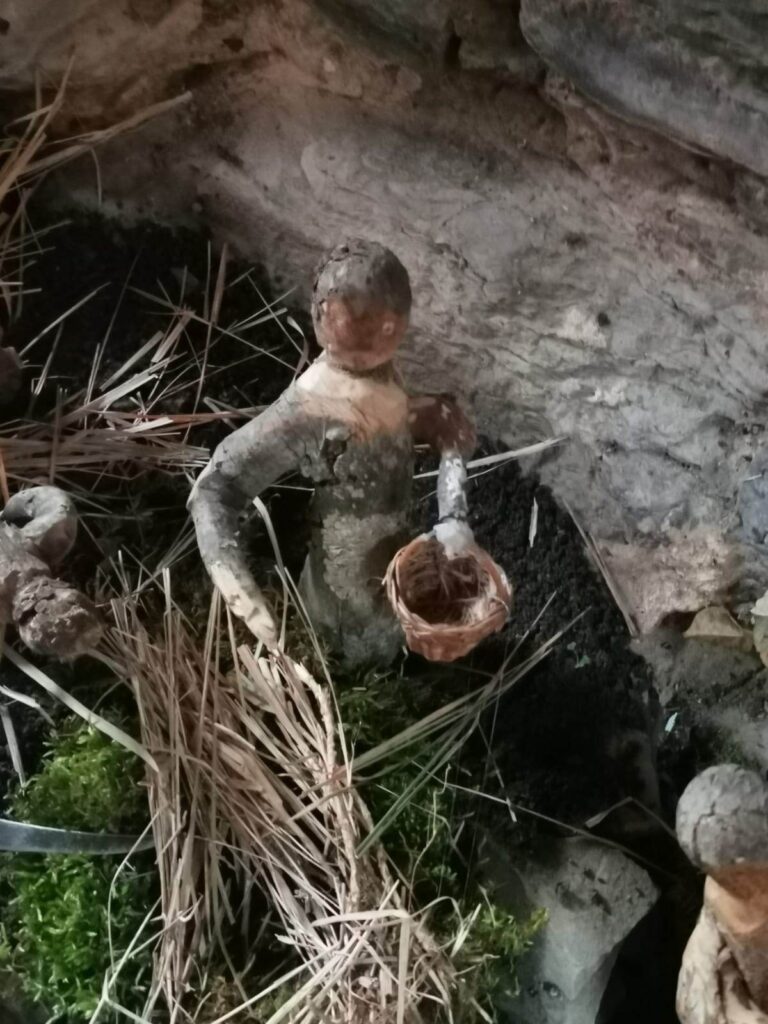 “Anche quest’anno mi sono divertito a rappresentare i mestieri di una volta con le statuette realizzate da me, circa una trentina. Ho usato pezzi di legno trovati in campagna, mi lascio ispirare dalla loro forma. Proprio oggi ne ho trovato un altro che inizierò a intagliare.