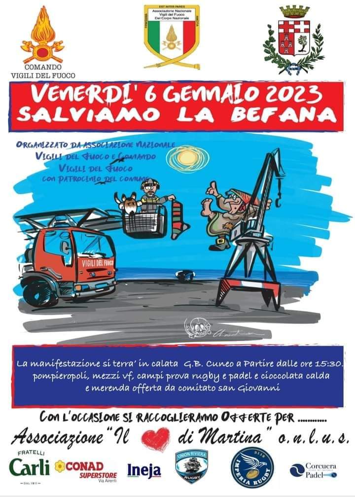 Venerdì 6 gennaio a Imperia torna la tradizionale manifestazione dei Vigili del fuoco “Salviamo la Befana”, dedicata ai più piccoli.