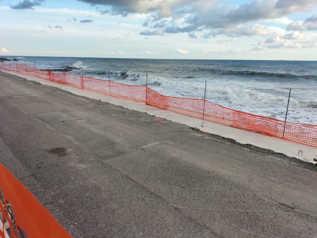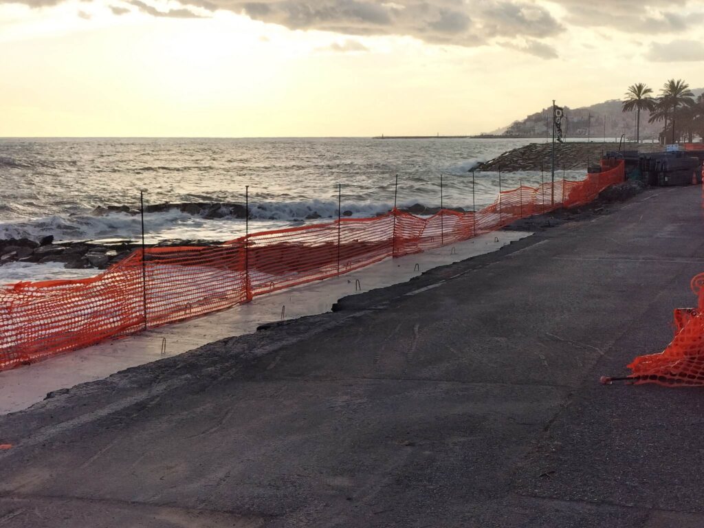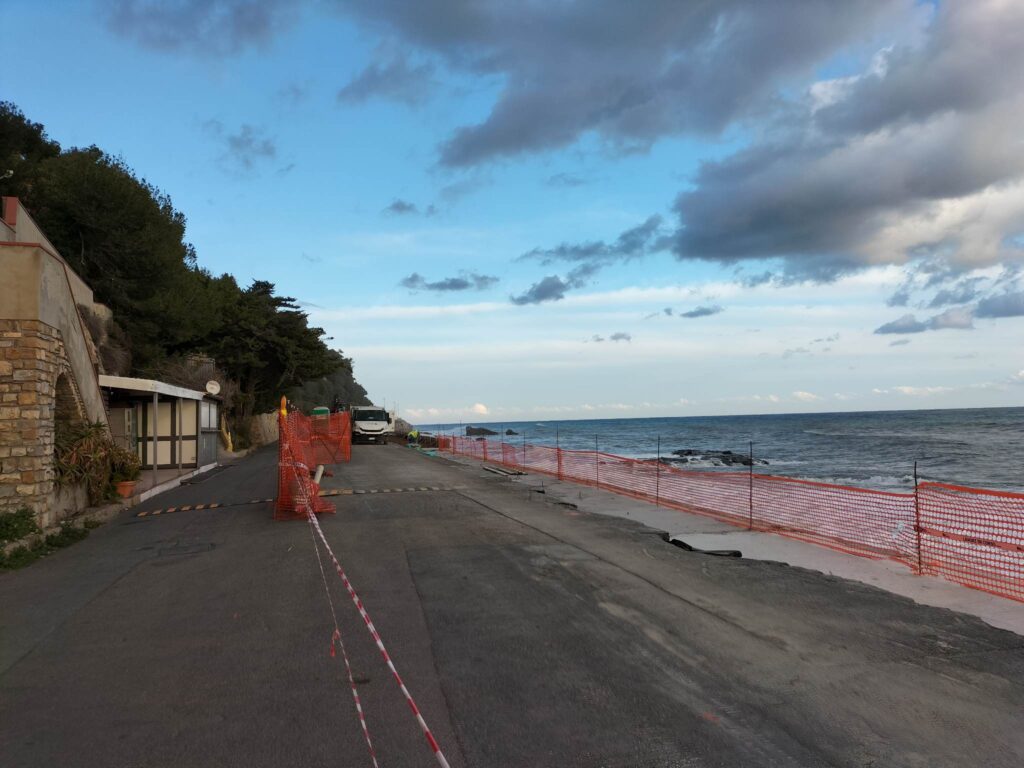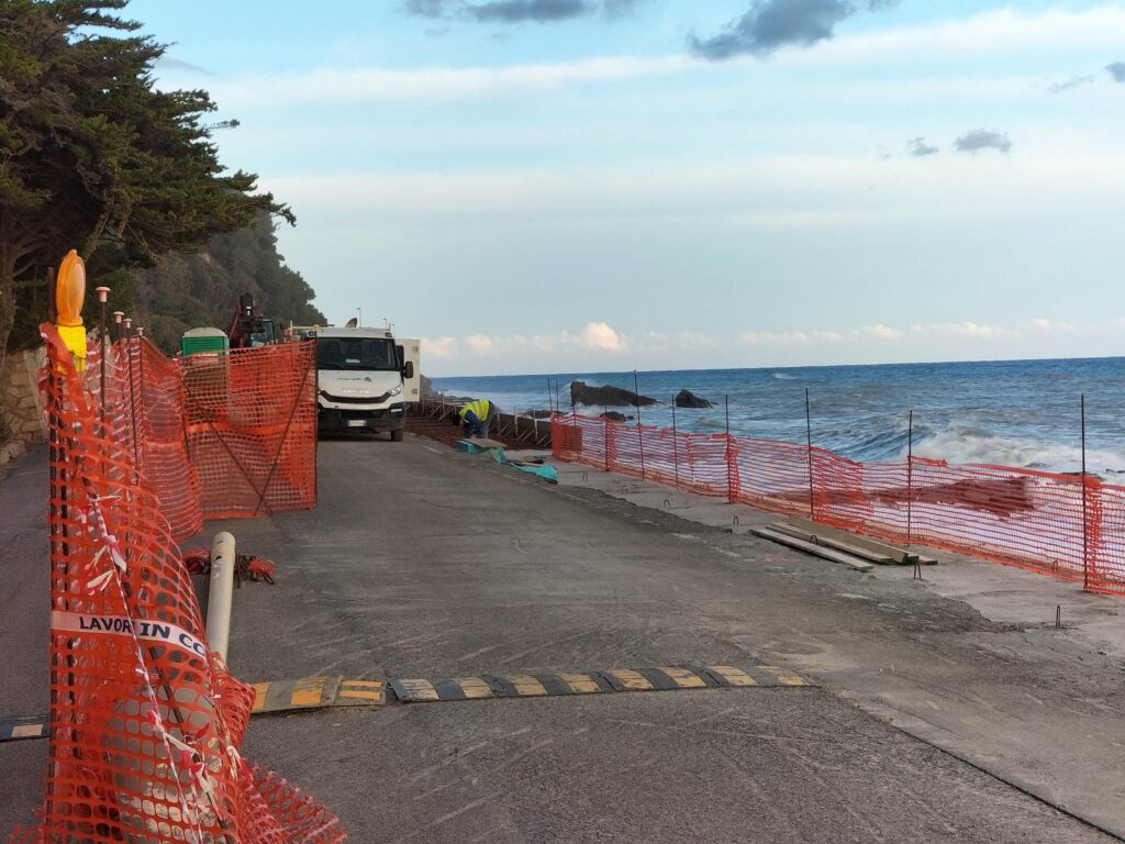 Nel primo tratto gli operai hanno iniziato a demolire il muretto della passeggiata per fare spazio alla passerella a sbalzo prevista dal progetto. Per permettere l’esecuzione dell’intervento, lo ricordiamo, il Comune ha emesso un’ordinanza che modifica la viabilità fino al termine dei lavori (clicca qui per i dettagli). Il cantiere, allestito lo scorso settembre, sarà spostato a mano a mano che i lavori proseguiranno.