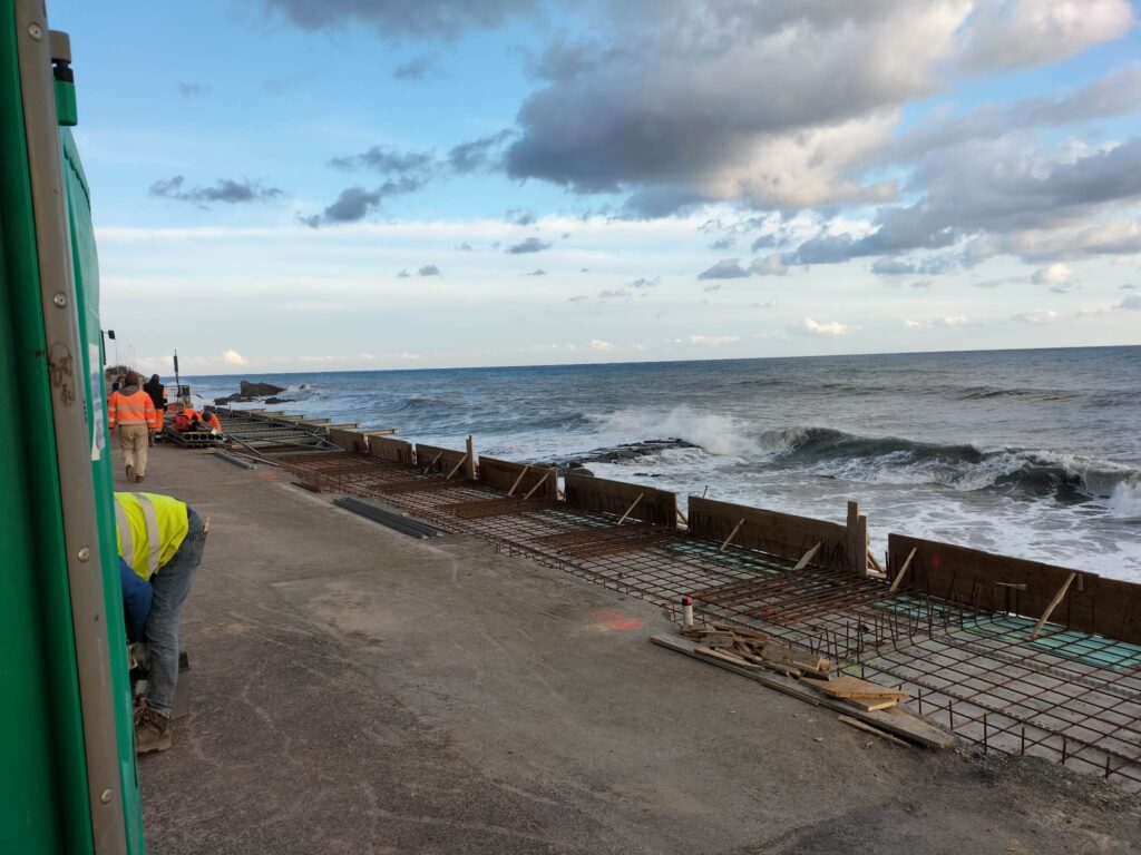 Proseguono i lavori per la realizzazione della passerella a sbalzo che sorgerà lungo via A.S. Novaro, fino all’Incompiuta, nell’ambito del progetto della pista ciclabile, ovvero la “Green Line” del Comune di Imperia.