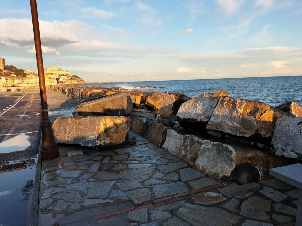 Danni a Borgo Prino, in particolare al parcheggio di piazzale Torre Bonazza, a seguito della mareggiata abbattutasi sul litorale del ponente ligure nei giorni scorsi.
