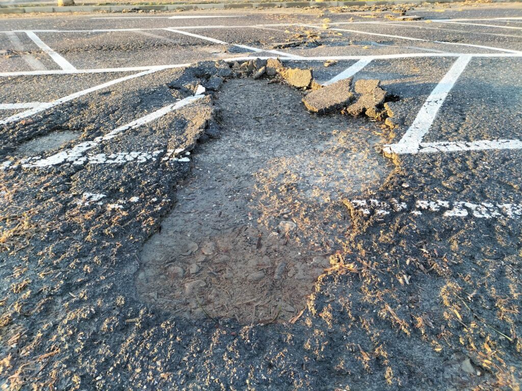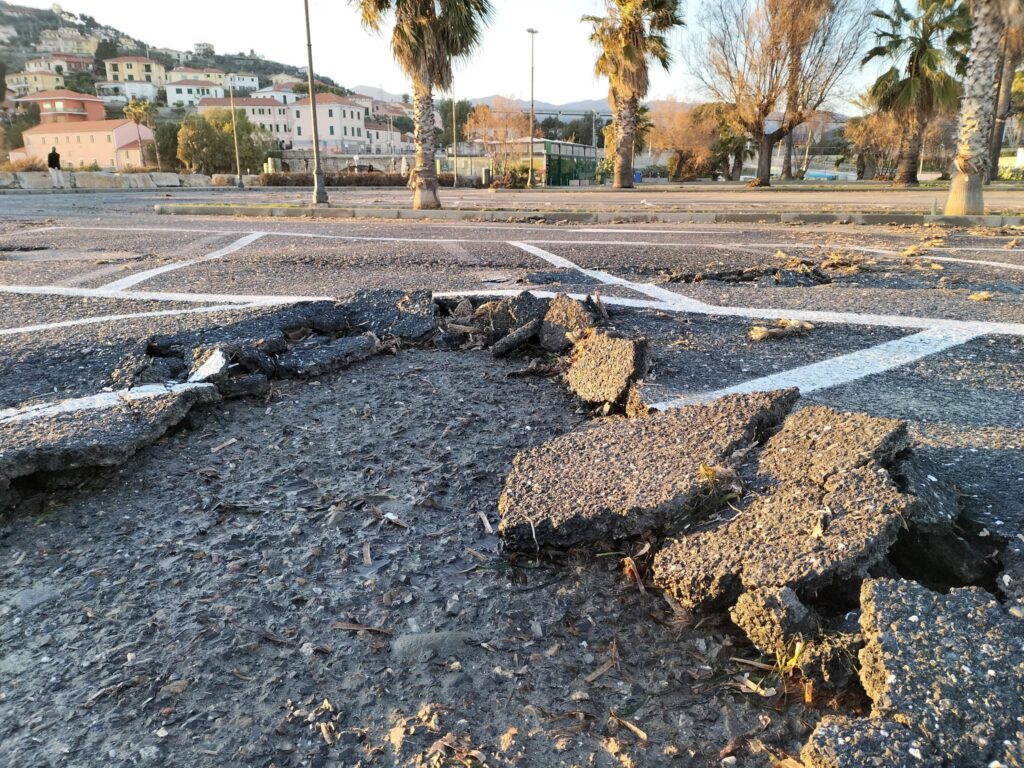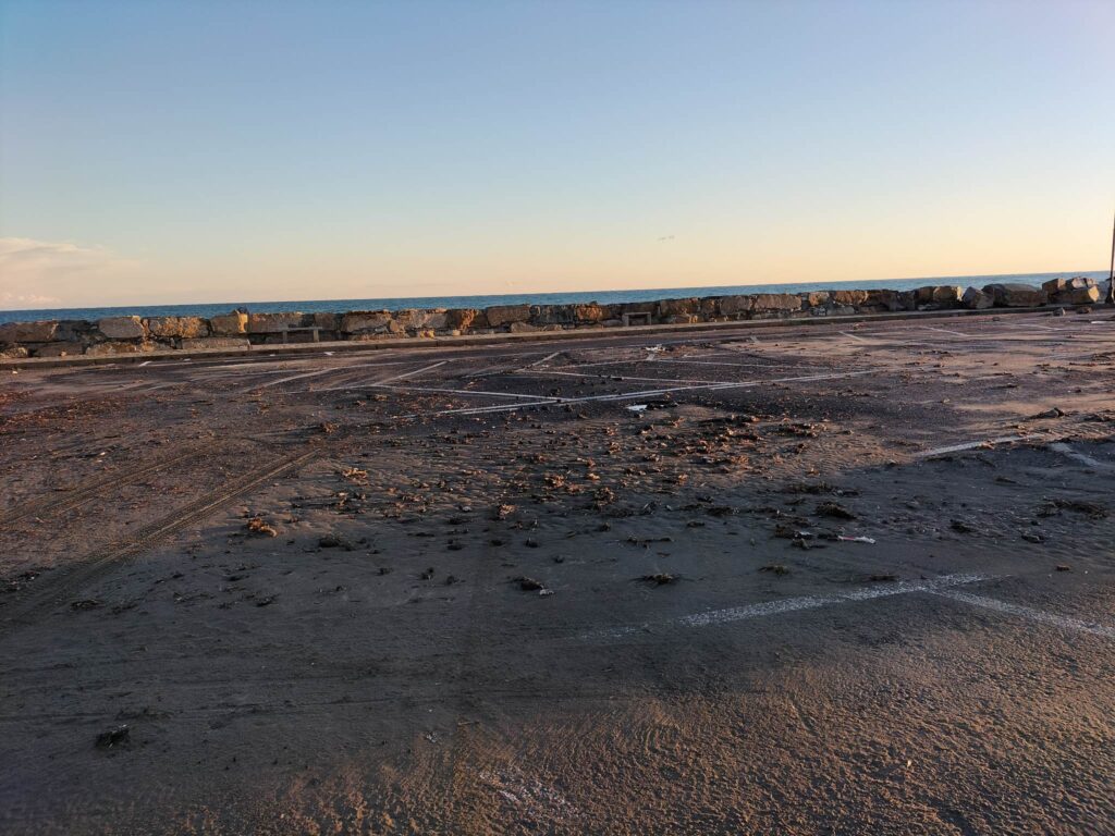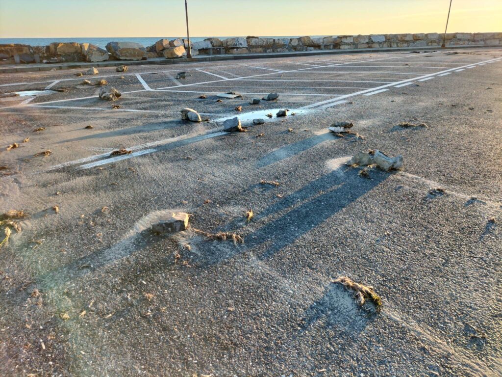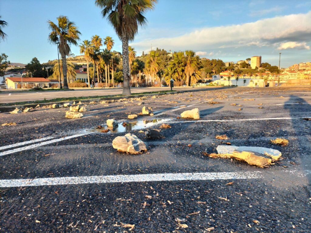 I detriti hanno invaso il parcheggio, danneggiando in più punti l’asfalto. L’area è stata per questo interdetta al traffico in attesa della pulizia e della messa in sicurezza.