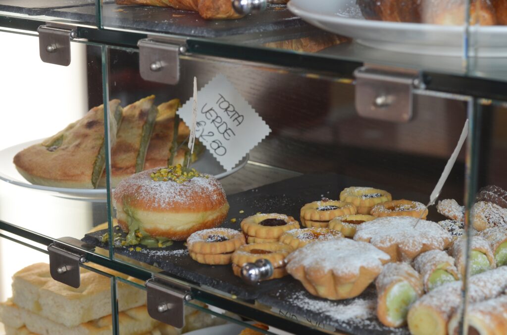 Impossibile non farsi tentare dalle fragranti brioche che possono essere farcite al momento scegliendo tra diversi tipi di creme Ferrero e marmellate Agrimontana, con spolverata di zucchero a velo e granella di nocciole. Non possono mancare certamente anche tanti altri dolci, dai cannoli ai krapfen alla crema, fino al salato, come pizza, focaccia e torta verde, e molto altro.