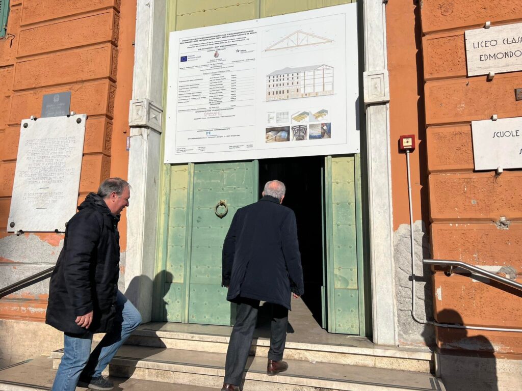 “Riapriamo questo edificio, lo mettiamo in sicurezza, con un arredo consono – Queste le parole del sindaco di Imperia, Claudio Scajola, al termine di un sopralluogo all’interno della scuola di Piazza Calvi. Dopo aver fatto visita ai lavori per un deposito all’interno della galleria di Via Santa Lucia, il primo cittadino si è spostato nello stabile che ospitava il Liceo Classico.