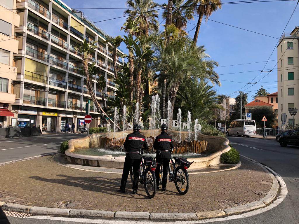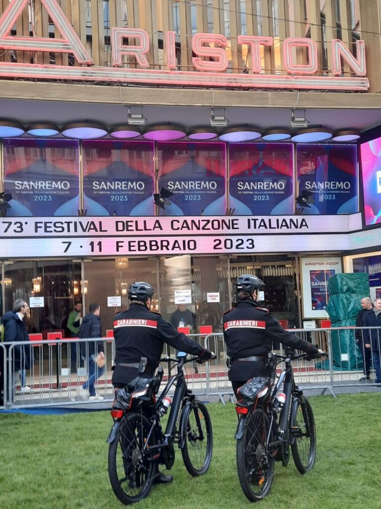 In occasione della 73ª edizione del Festival della canzone italiana in Sanremo l’Arma dei Carabinieri pattuglia il centro della città anche in bicicletta.