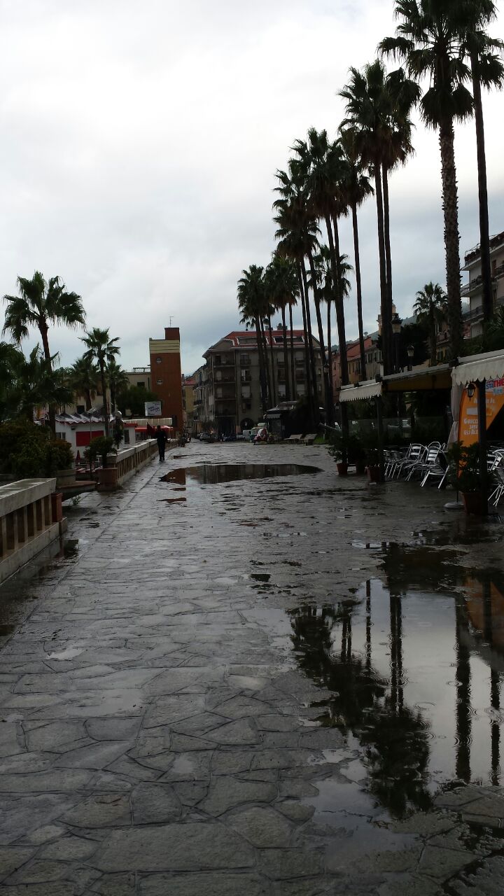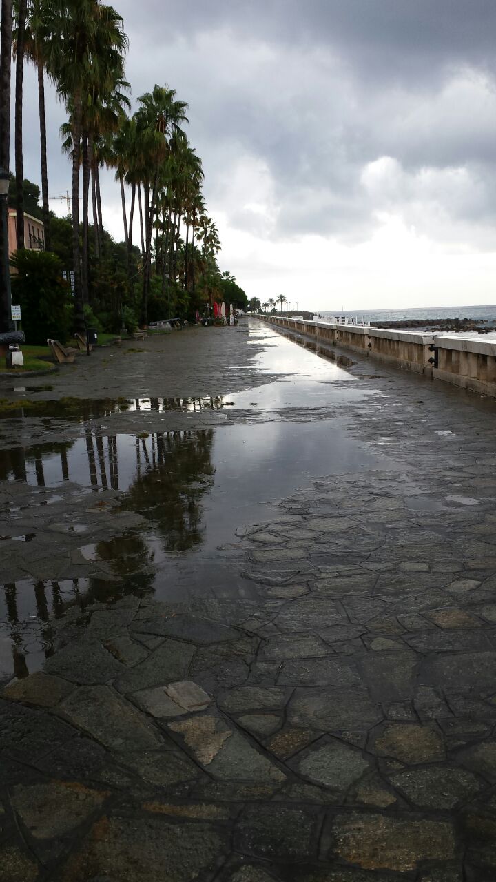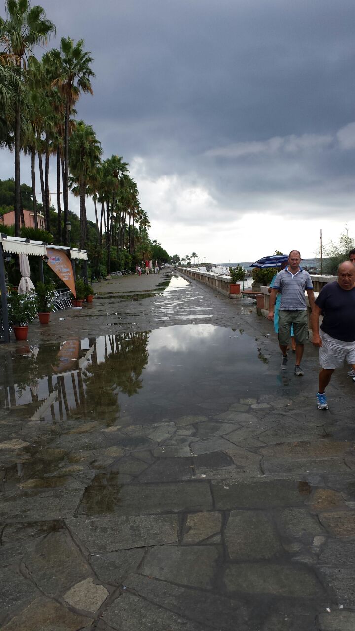 Imperia. Dopo la pioggia di questa mattina un nostro lettore ci ha inviato delle foto sulla situazione della passeggiata della Spianata di Oneglia tra pozzanghere e rifiuti: