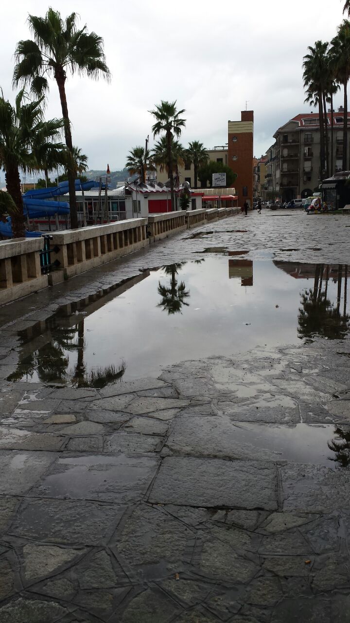“Questa mattina, mi trovavo a passeggiare sulla Spianata di Oneglia (IM), e di fronte a me ho trovato questo spettacolo. Numerosissime pozzanghere create dall’acqua, che oltre ad essere piene di immondizia rimangono per giorni e giorni dopo la precipitazione. Esse restituiscono uno spettacolo osceno, che oltretutto impedisce di camminare sulla Spianata. Trovo questa situazione ridicola, e aggravata dal fatto che siamo in piena stagione estiva, auspico un intervento tempestivo da parte del Comune”.