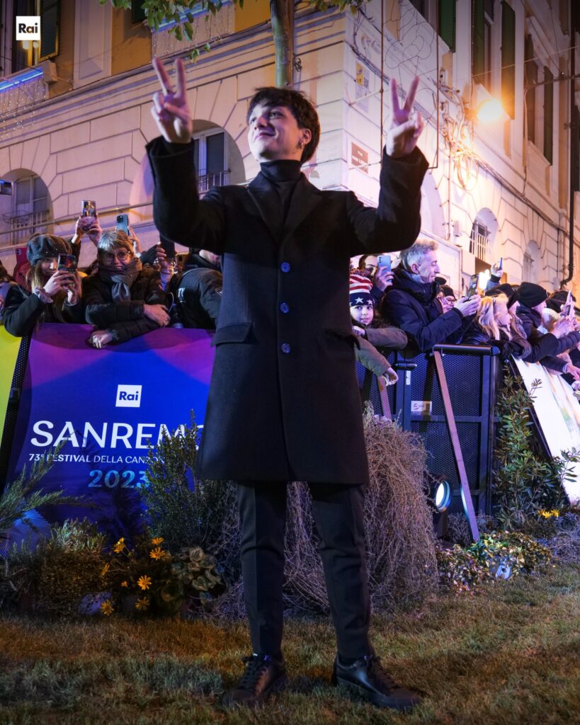 Dopo la giornata di prove in vista della prima serata, attesa per oggi, martedì 6 febbraio, ieri sera davanti al Teatro Ariston un bagno di folla si è ritrovata alle transenne per vedere da vicino e ammirare i look dei cantanti in gara che hanno concesso sorrisi, saluti e alcuni anche autografi e lancio di fiori ai fan.