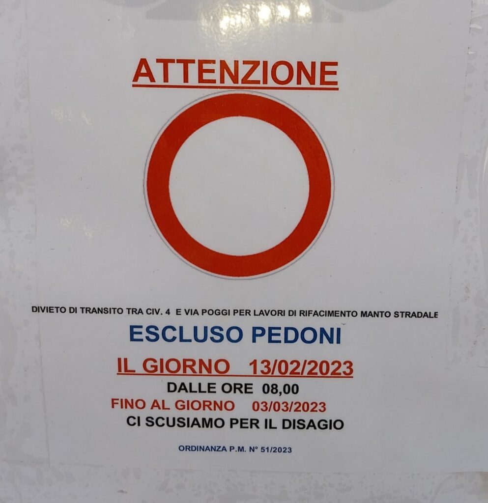 Rimane comunque garantito il passaggio ai pedoni. Siamo certi della comprensione dei residenti, che in questi anni hanno sollecitato diverse volte la sistemazione della strada“.