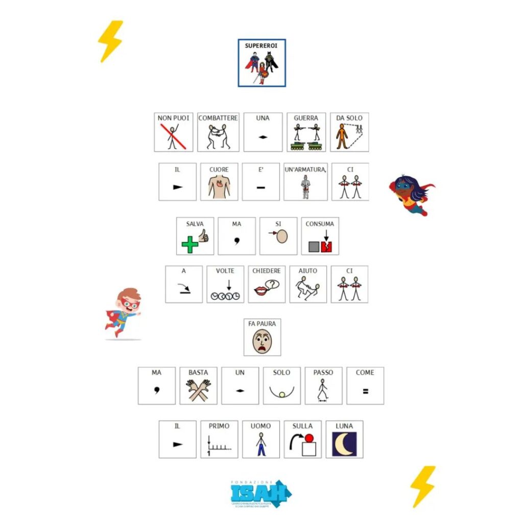 La canzone “Supereroi” di Mr. Rain in versione Comunicazione Aumentativa Alternativa per chi ha difficoltà nella comunicazione linguistica. È questa l’iniziativa del Centro Isah di Imperia per rendere più accessibile il brano arrivato terzo alla 73esima edizione del Festival di Sanremo, terminata pochi giorni fa.