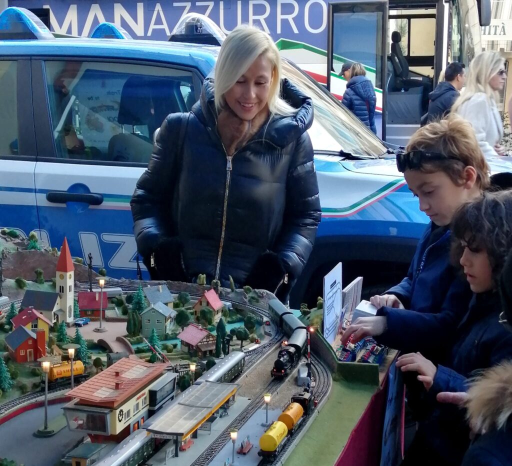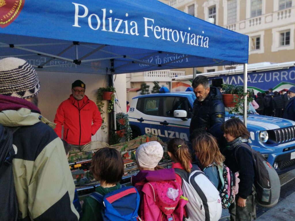 Nello Stand della Polizia di Stato – allestito in Piazza Borea D’Olmo, di fronte al Teatro Ariston – è stato installato, in collaborazione con il MarklinFan Club Italia, un plastico ferroviario “vintage” funzionante, visitabile ed utilizzabile tutti i giorni dal pubblico, sotto gli occhi attenti dei soci del Museo che ne hanno curato il restauro.