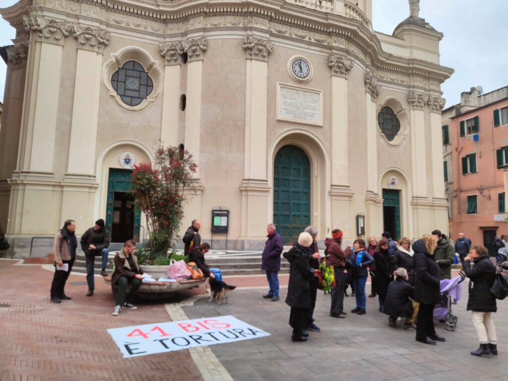 Presidio contro il 41 bis e a sostegno dell’anarchico Alfredo Cospito questa mattina in piazza San Giovanni a Imperia. Una ventina di attivisti ha distribuito volantini informativi alla cittadinanza.