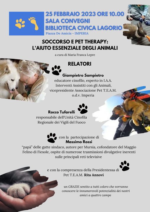 “Soccorso e Pet Therapy, l’aiuto essenziale degli animali”: questo il titolo di un convegno ospitato questa mattina alla Biblioteca civica Lagorio di Imperia.