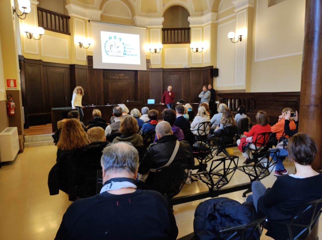 Sono intervenuti Giampiero Sampietro, educatore cinofilo, Rocco Tuffarelli, responsabile regionale delle unità cinofile dei Vigili del fuoco e Massimo Rossi, scrittore e autore de “Le Gatte Sindaco”.