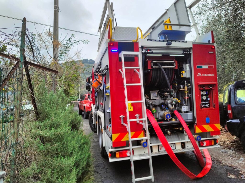 Le operazioni di spegnimento rese più complicate dalla strada stretta