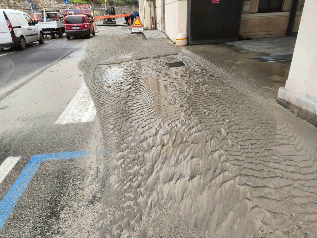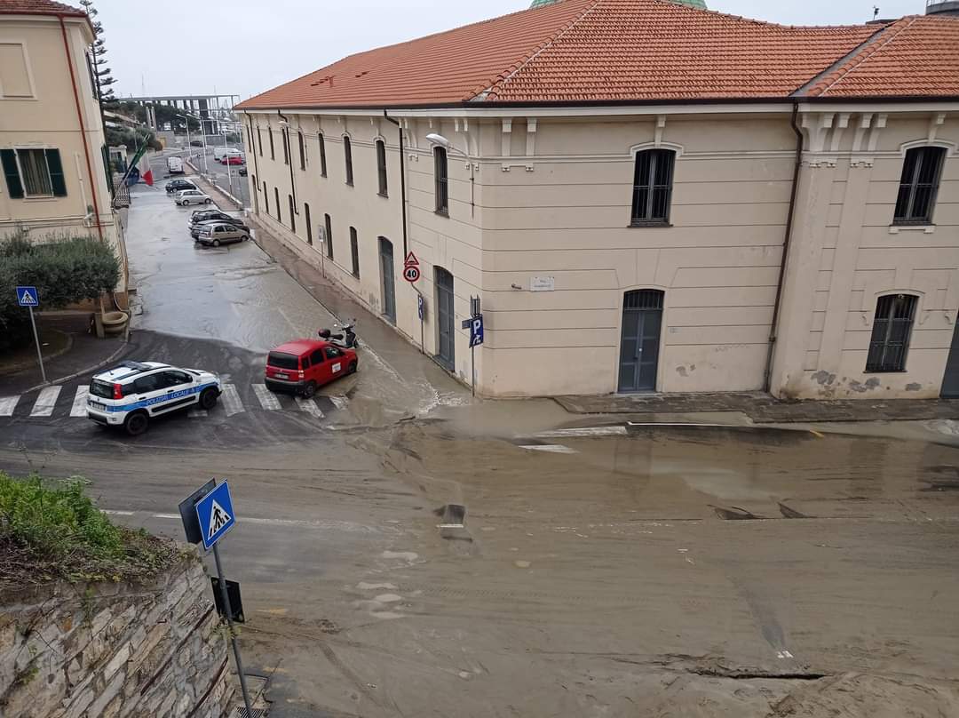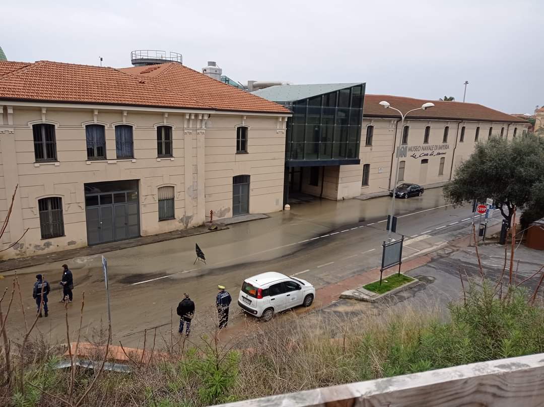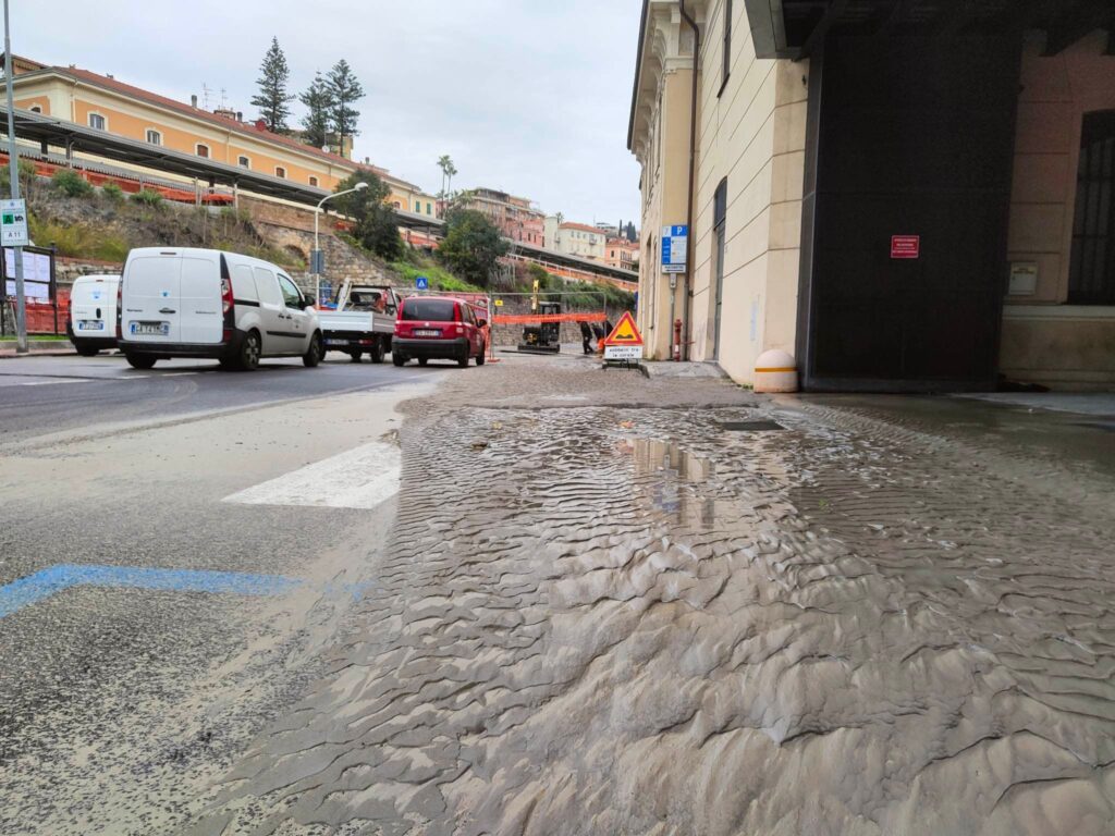 Come nella scena di un film già visto, le strade attorno al Museo Navale, alla Marina, sono di nuovo allagate a causa dello scoppio della condotta principale dell’acquedotto del Roja.