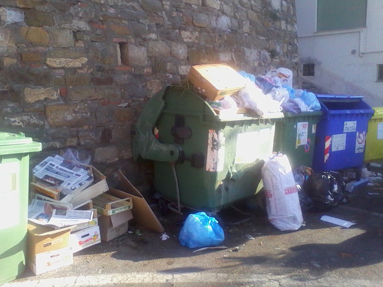 Tornando ad occuparmi del Parasio, come vuole il Sindaco, non posso che parlare di rifiuti, visto che la situazione si è mantenuta per tutto il periodo estivo ben al di là dei limiti accettabili, in una parte della Città che dovrebbe essere tra le più rappresentative. Il numero di cassonetti nel Borgo è stato ridotto di circa la metà con il risultato che nelle due isole “ecologiche” rimaste i rifiuti traboccano regolarmente e miasmi insopportabili si diffondono alle abitazioni circostanti costringendo spesso gli abitanti a chiudere le finestre. I malconci cassonetti rimasti, del vecchio tipo, oltre a rimanere perennemente aperti, disperdono liquami con effetti veramente vergognosi anche dal punto di vista igienico sanitario.