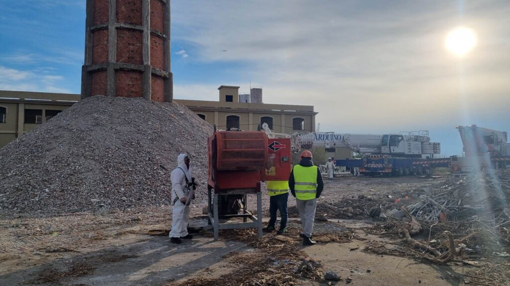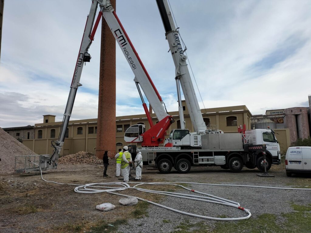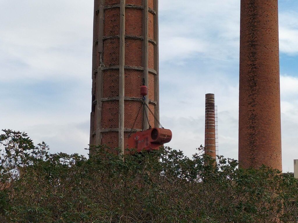 Per demolire la ciminiera, infatti, gli operai della General Smontaggi partiranno dall’alto verso il basso, mattone per mattone, utilizzando una grossa pinza idraulica. Pinza che, per funzionare ha bisogno di un vento massimo di 12 m/s, mentre quello rilevato oggi, in cima alla ciminiera alta 76 metri circa, superava i 36 m/s, che non ha permesso lo svolgersi delle operazioni.