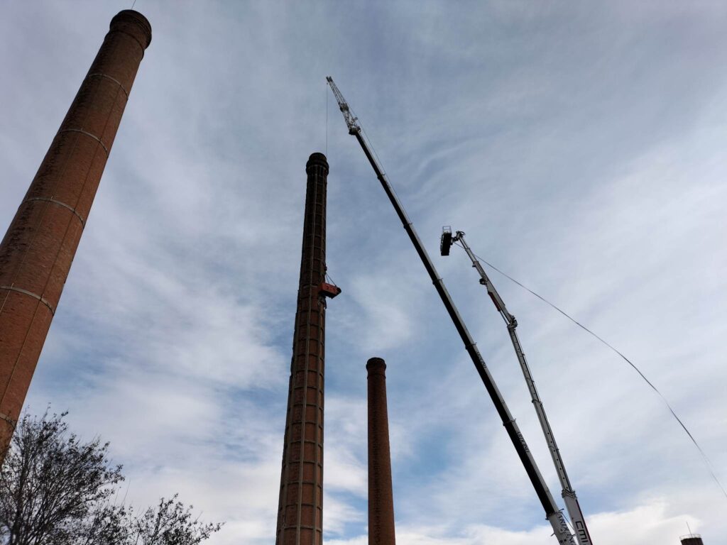 Ciminiera ex Ferriere: il forte vento ferma la demolizione