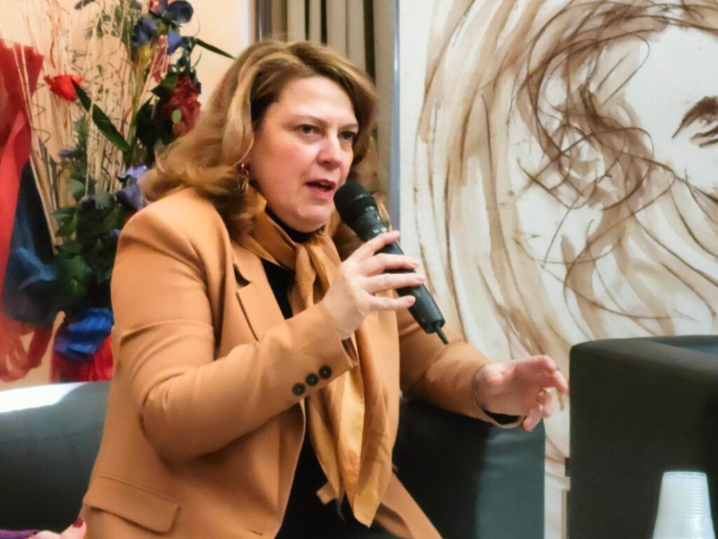 “Questa sera abbiamo voluto ospitare di nuovo un’autrice che ha dedicato una delle sue opere alla biografia di una donna che per tutta la vita ha offerto il suo impegno non solo per far valere il suo titolo professionale ma anche come lotta per l’emancipazione femminile. Parliamo di festa delle donne ma vogliamo intendere un impegno costante affinchè i ditti, le qualità e le virtù che portano le donne nella società siano riconosciuti. Non parliamo solo delle donne, ma di genere maschile e femminile e di tutti gli emarginati.