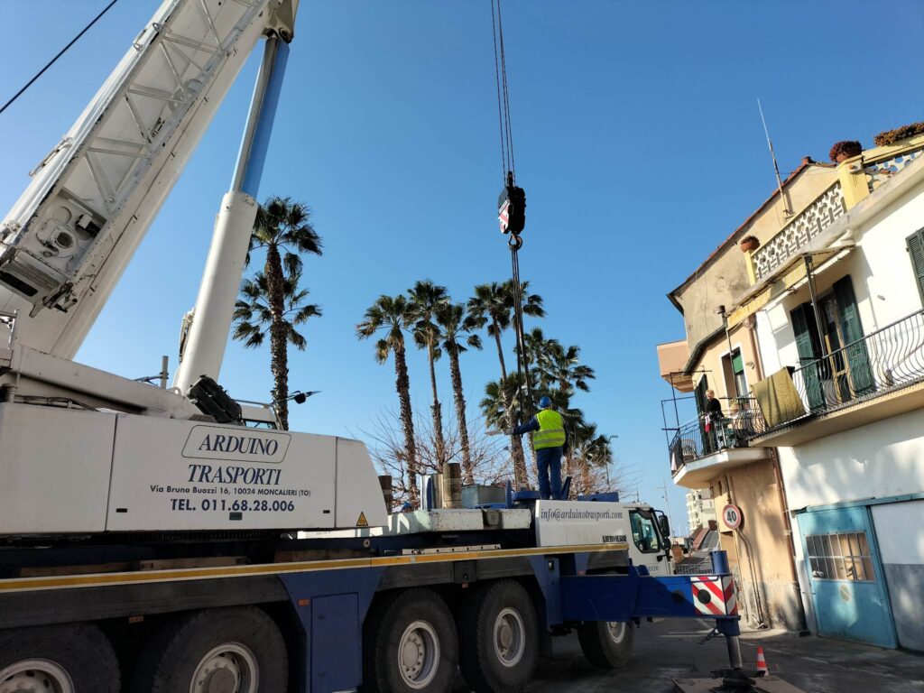 costruzioni in legno. La gru in funzione in queste ore, è la stessa che pochi giorni fa sollevava la pinza idraula che ha demolito la ciminiera centrale alle ex Ferriere.