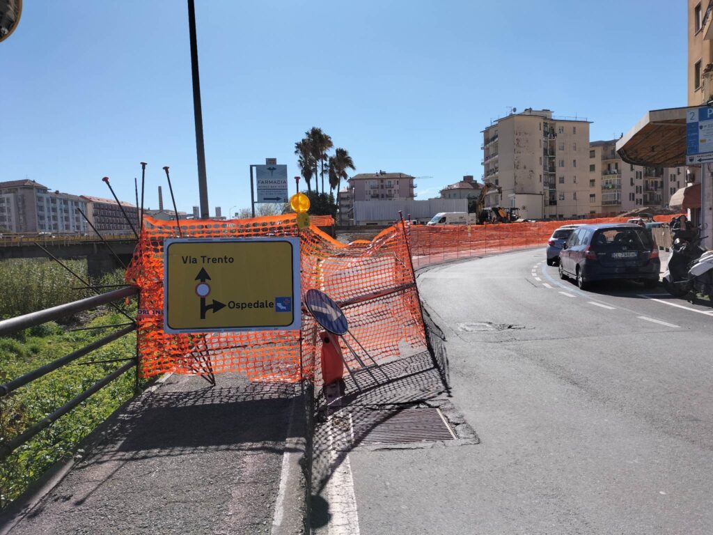 Nuova chiusura di via Trento, per consentire i lavori di realizzazione della pista ciclabile nei pressi di Borgo San Moro. È quanto stabilito dal comune di Imperia, tramite una ordinanza.