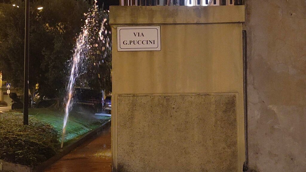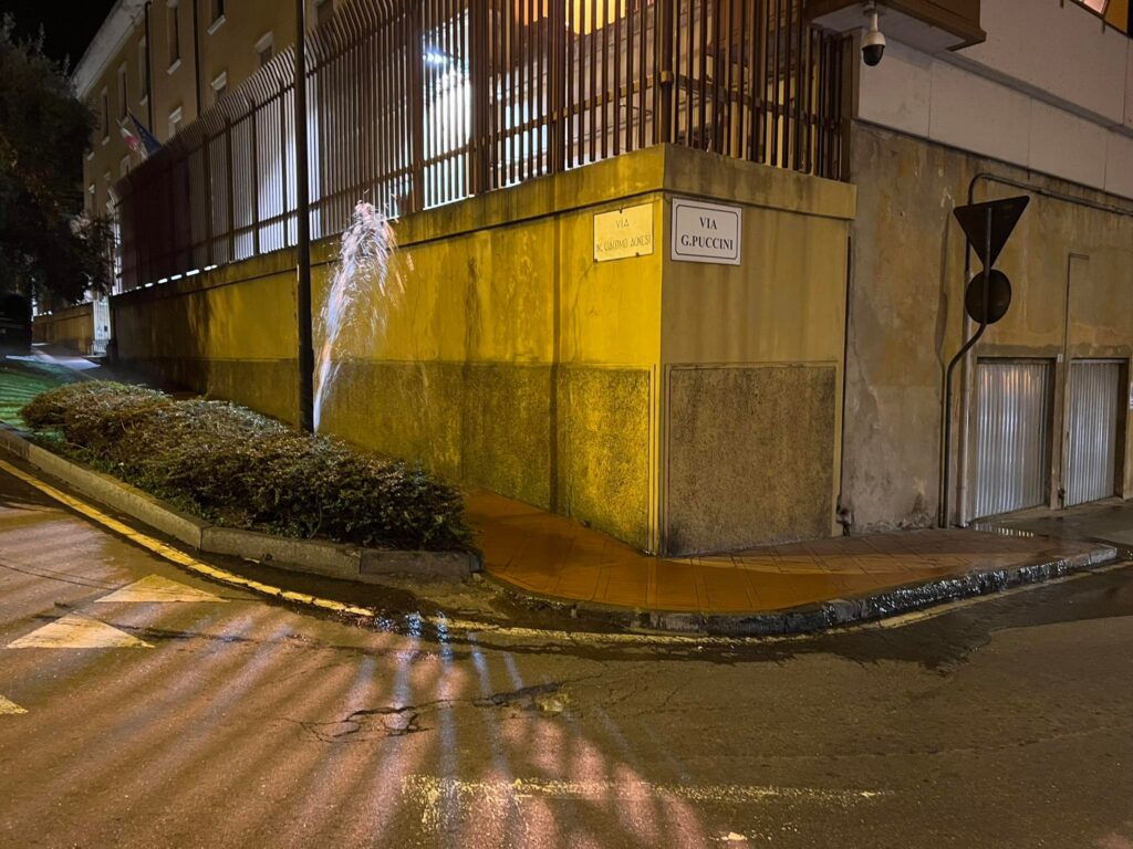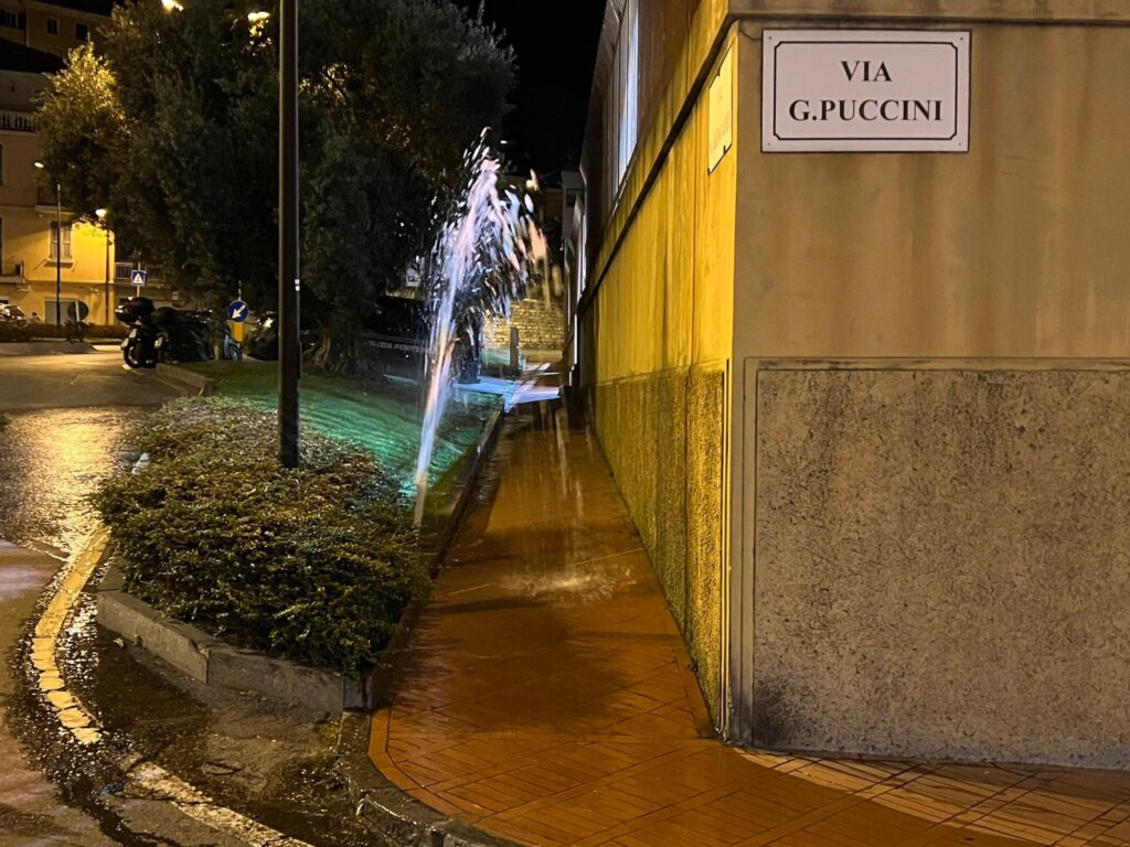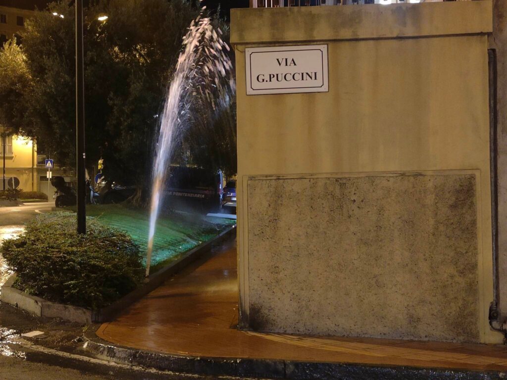 Il guasto provoca un geyser di alcuni metri e allagamenti in via Puccini. Una situazione che si ripete con grande frequenza senza che nessuno, per il momento, abbia messo in atto alcun intervento risolutivo di riparazione.