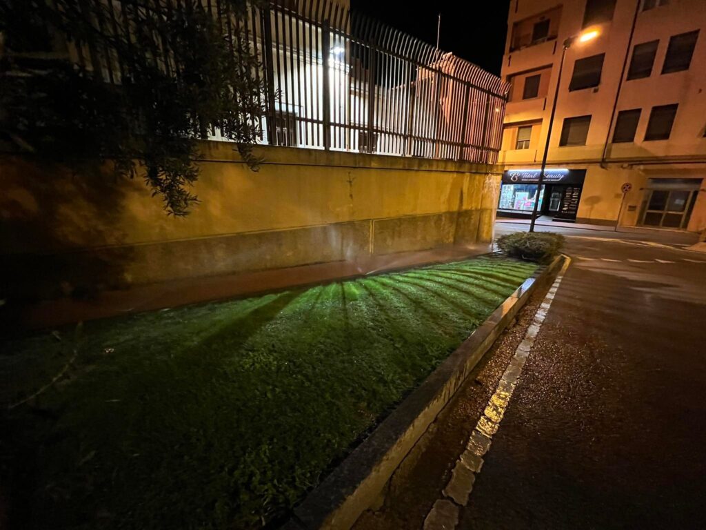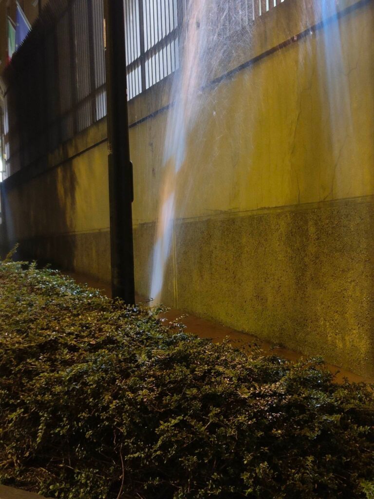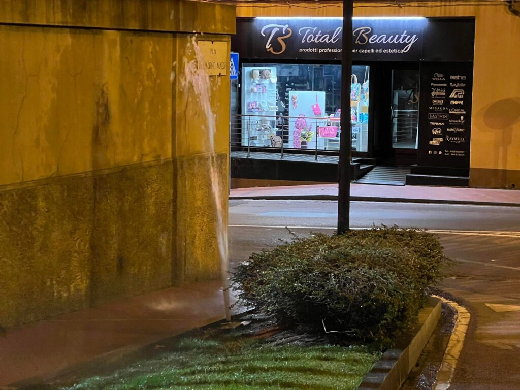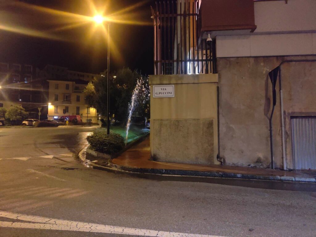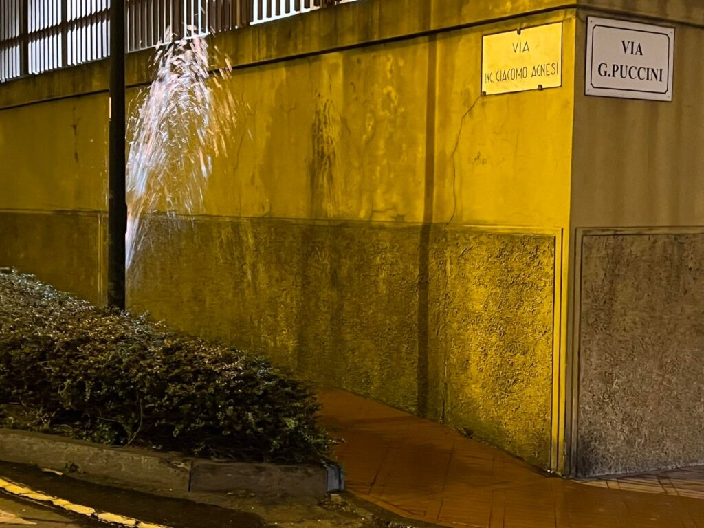 Ennesimo guasto, questa notte, al tubo di irrigazione delle aiuole di via Agnesi, a Imperia, nei pressi della rotonda delle carceri.