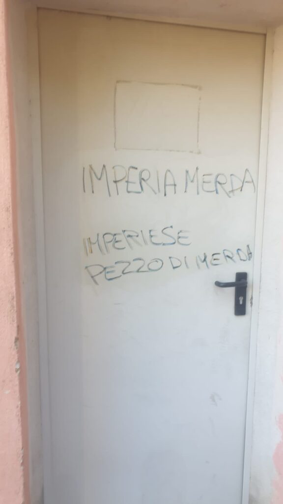 Secondo quanto ricostruito finora, i vandali potrebbero essere entrati dalla parte delle tribune per recarsi verso il chioschetto del bar tentando di accedervi. All’interno degli spogliatoi sono comparse anche delle scritte denigratorie: “Imperia merda” e “Imperiesi pezzi di merda”. Danneggiati alcuni cancelli e alcune porte.