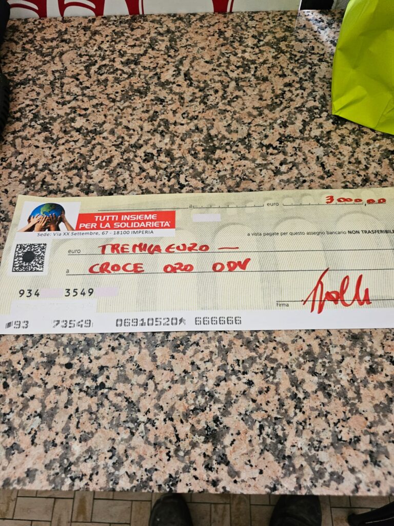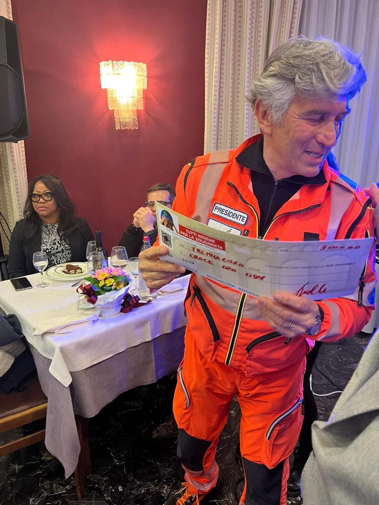 “Ringraziamo davvero tantissimo tutti coloro che hanno partecipato – afferma Giuseppe Fici dell’associazione “Tutti insieme per la solidarietà” – il ristorante era pieno e abbiamo raccolto 3 mila euro di fondi che abbiamo donato alla Croce Oro di Cervo. La nostra associazione si occupa di consegnare pacchi alimentari ogni giovedì di fine mese dalle 16 in poi, alle famiglie in difficoltà. Ne seguiamo circa 40. Chi ci vuole sostenere può fare donazioni oppure diventare volontario per dare una mano a presidiare i carrelli nei supermercati per la raccolta alimentare. Per questo quando abbiamo saputo dell’ambulanza fuori uso della Croce Oro, che serve a salvare vite ogni giorno, non abbiamo avuto dubbi e ci siamo messi in moto per dare una mano. Ringrazio tutti i soci dell’associazione, siamo una squadra fantastica, come una famiglia”.