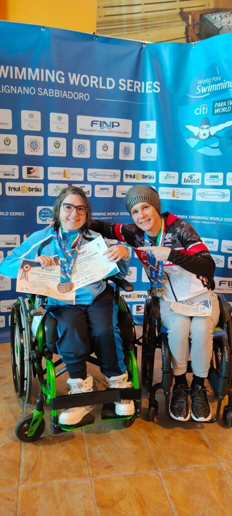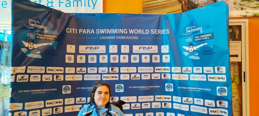 I migliori nuotatori paralimpici del mondo erano presenti a Lignano e Giorgia ha potuto assistere alle loro gare ed incontrarne alcuni, come la campionessa di nuoto ed handbike Katia Aere che ha partecipato alle Paralimpiadi di Tokio 2020, dedicando la propria medaglia al campione ed amico Alex Zanardi ed è titolare di molti titoli italiani in vasca.