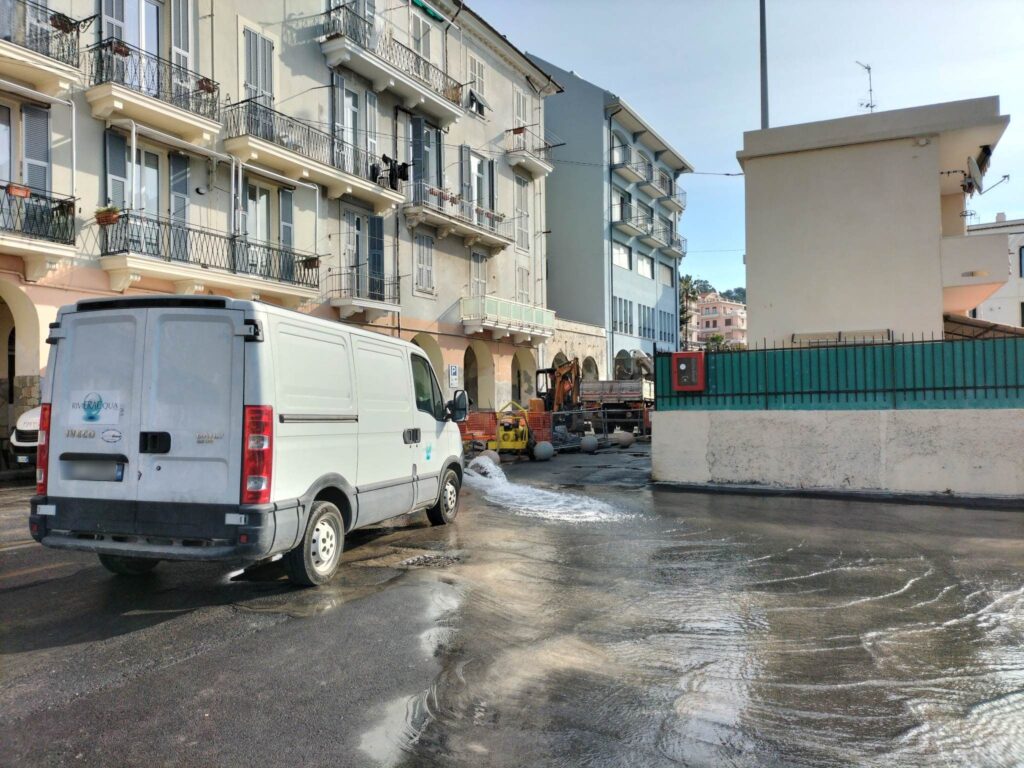 Imperia: guasto acquedotto, operai al lavoro in Calata Cuneo