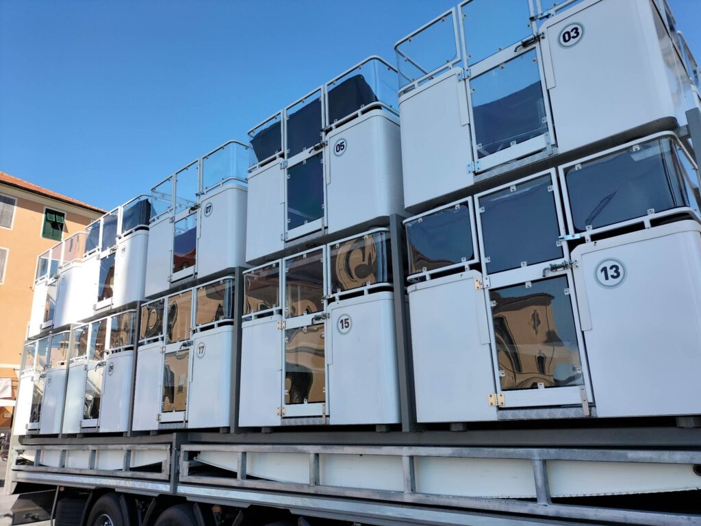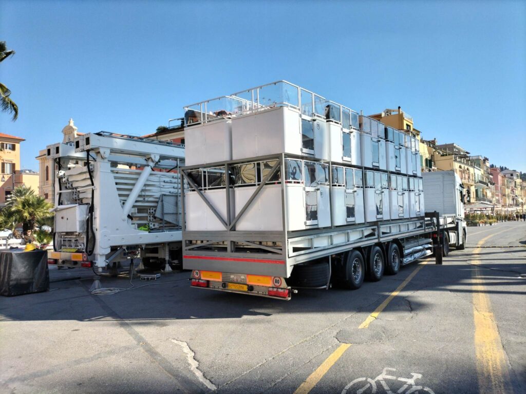 La struttura sarà posizionata in Calata Cuneo, di fronte alle storiche gru del porto di Oneglia. Alta 30 metri, è in grado di ospitare 80 passeggeri, in 20 cabine da 4 posti l’una.