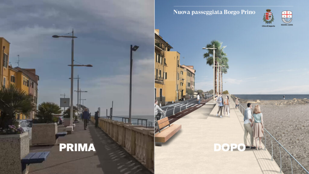 L’intervento ha un valore complessivo di circa 1,6 milioni e prevede la riqualificazione del lungomare Cristoforo Colombo a Borgo Prino, con l’ampliamento della passeggiata e la creazione di un percorso ciclo-pedonale.