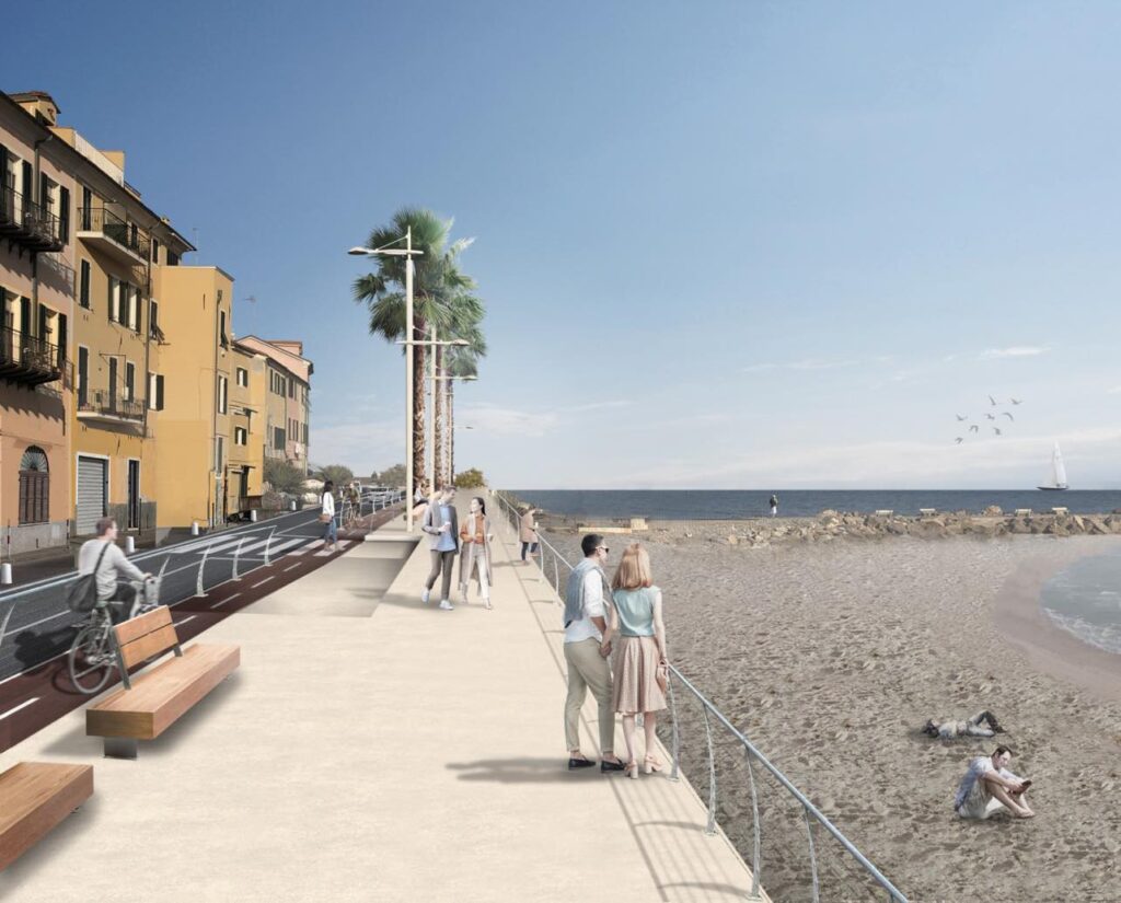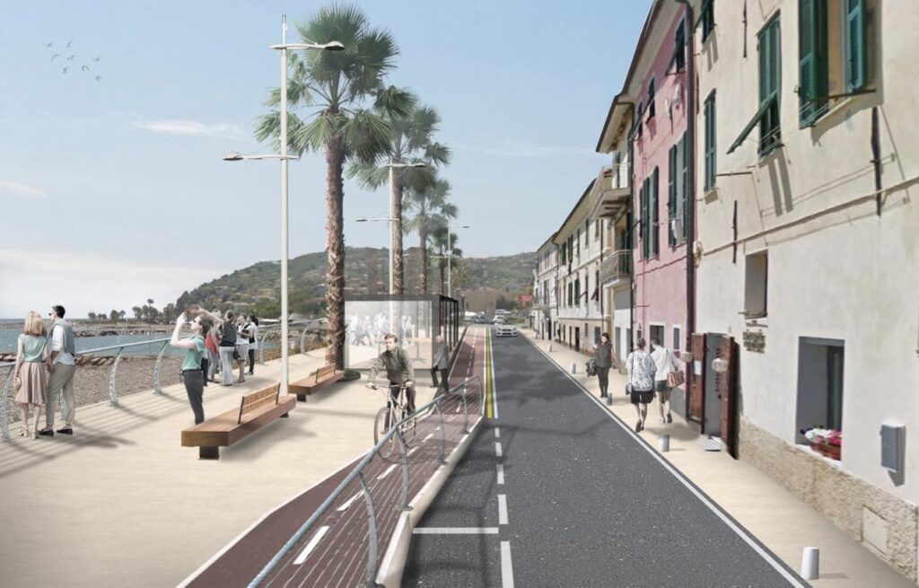 Gli interventi di rigenerazione urbana riguardano il miglioramento della viabilità e mobilità ciclistica di un tratto della strada ad una corsia a senso unico verso levante, con inserimento di un marciapiede e di una nuova pista ciclabile. In corrispondenza dei nuovi attraversamenti pedonali, verranno inseriti raccordi e rampe che fungeranno da collegamento fra la spiaggia e il lungomare.
