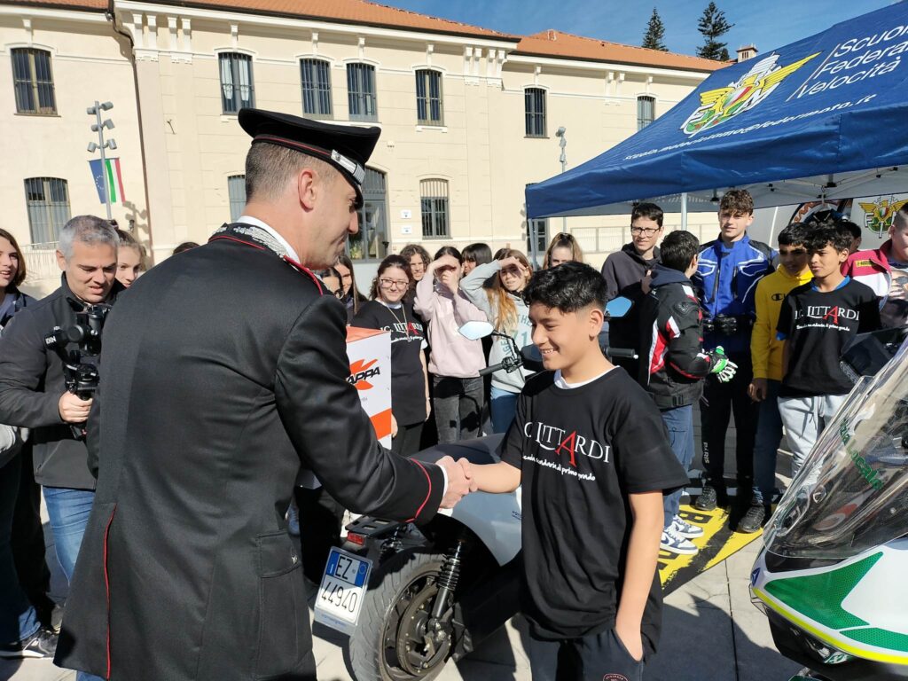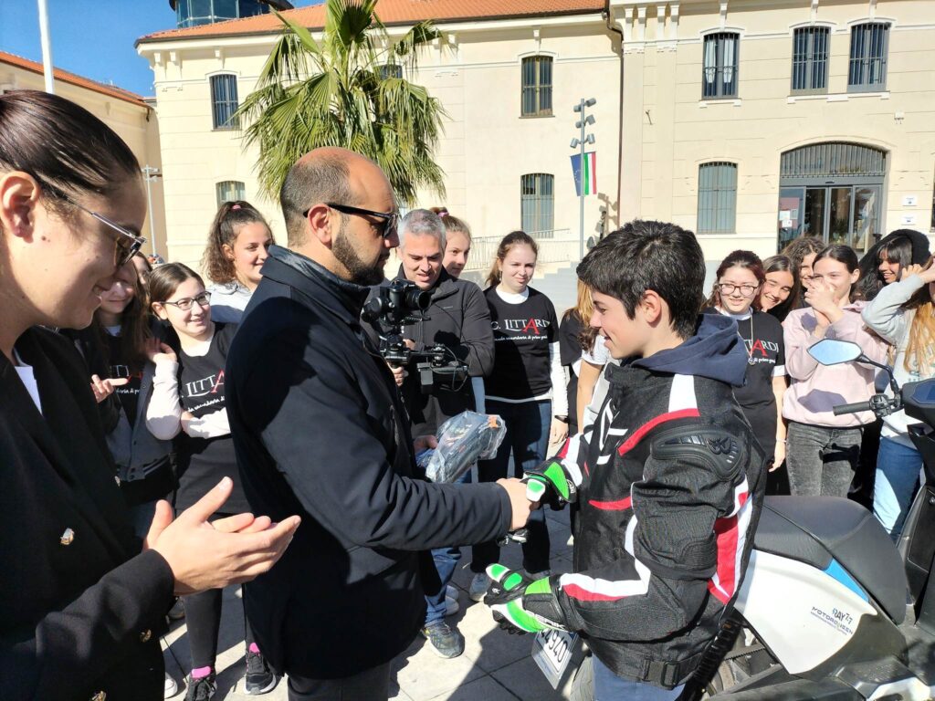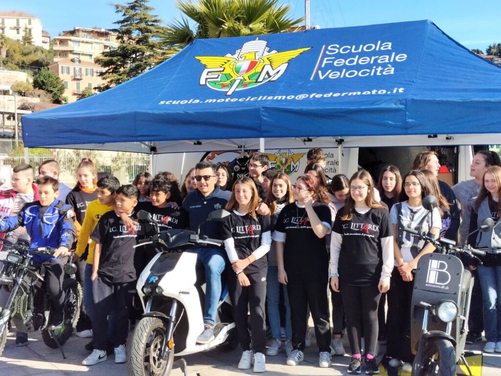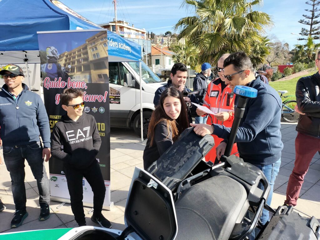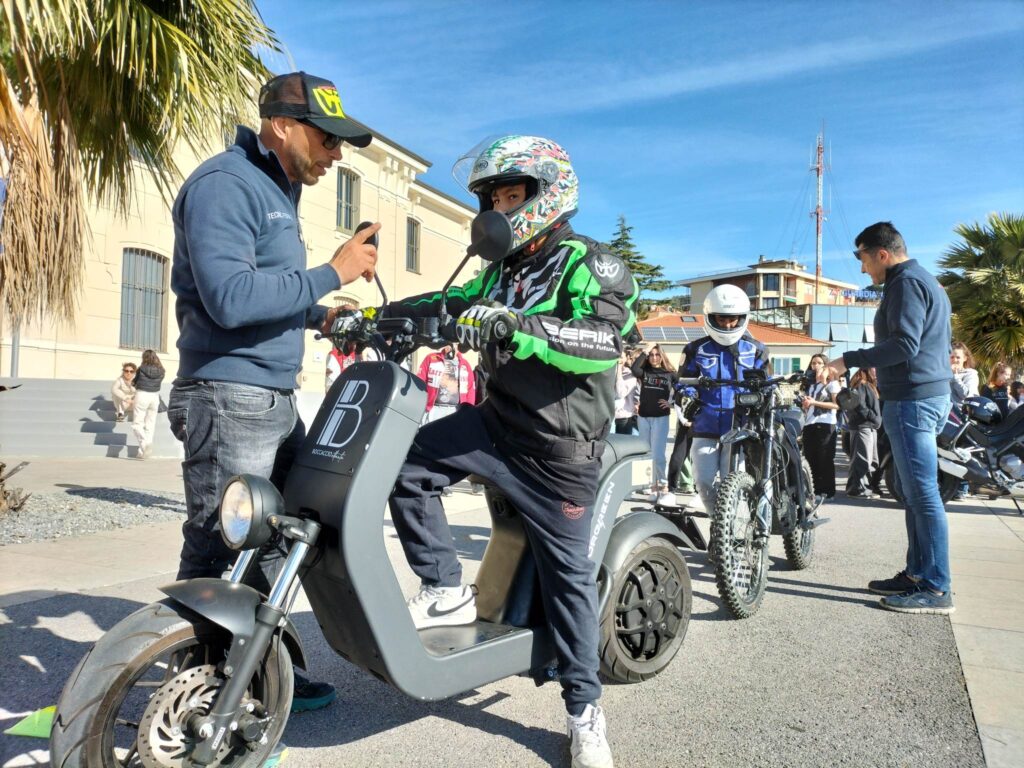 Ieri la prova teorica, oggi quella pratica, alla presenza di circa 30 alunni della scuola media dell’I.C. Littardi di Porto Maurizio. Dopo aver ricevuto alcune nozioni sulla gestione dei comandi di un motociclo elettrico, da parte degli istruttori della Accademy Nannelli riders, i ragazzi hanno indossato tutte le protezioni e guidato gli scooter. È stata anche occasione per mostrare loro come comportarsi in caso di incidenti.