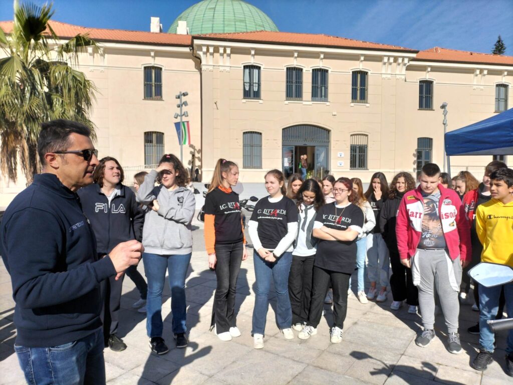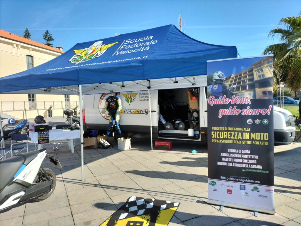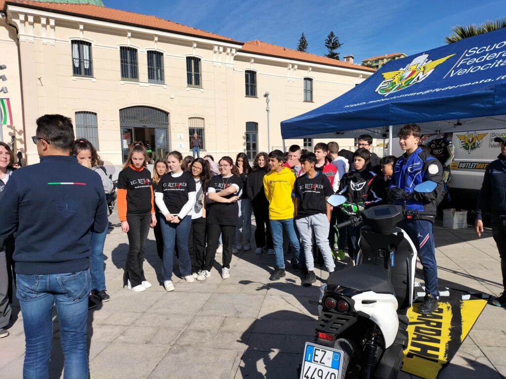 “Siamo qua con i ragazzi dell’I.C. Littardi di Porto Maurizio, per la prima nazionale in ambito scuole medie del progetto formativo Guido Bene Guido Sicuro. Un progetto che di solito è designato ai ragazzi delle scuole superiori e che questa volta ha voluto toccare una fascia di età che si prepara a conseguire il patentino.